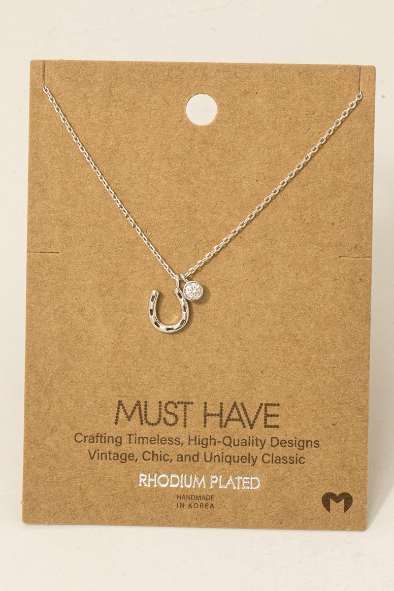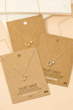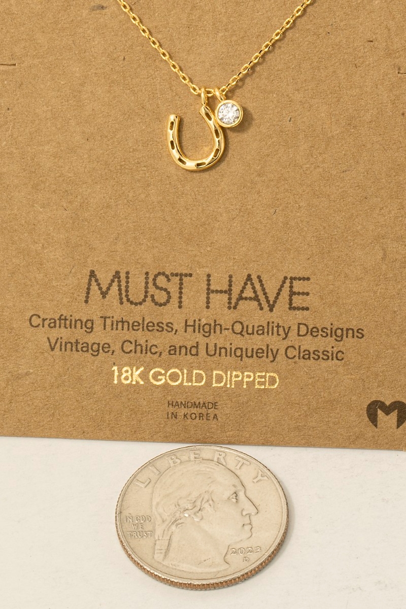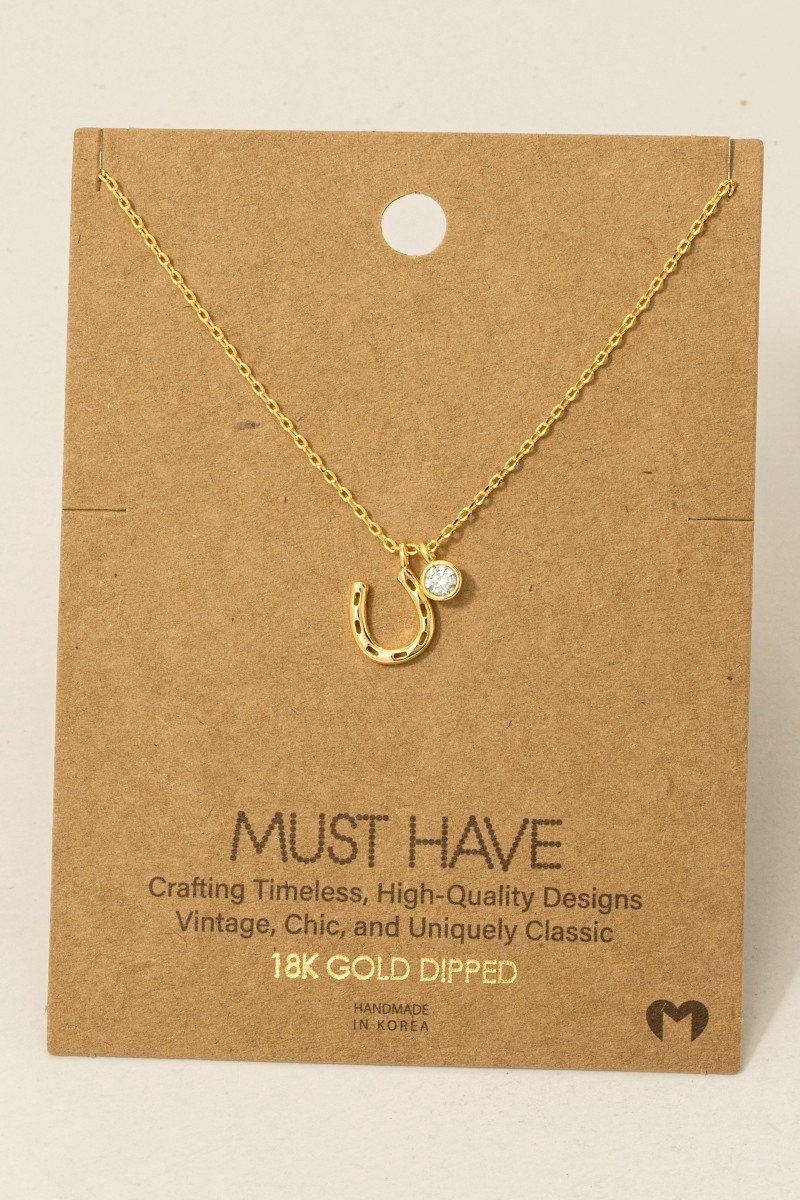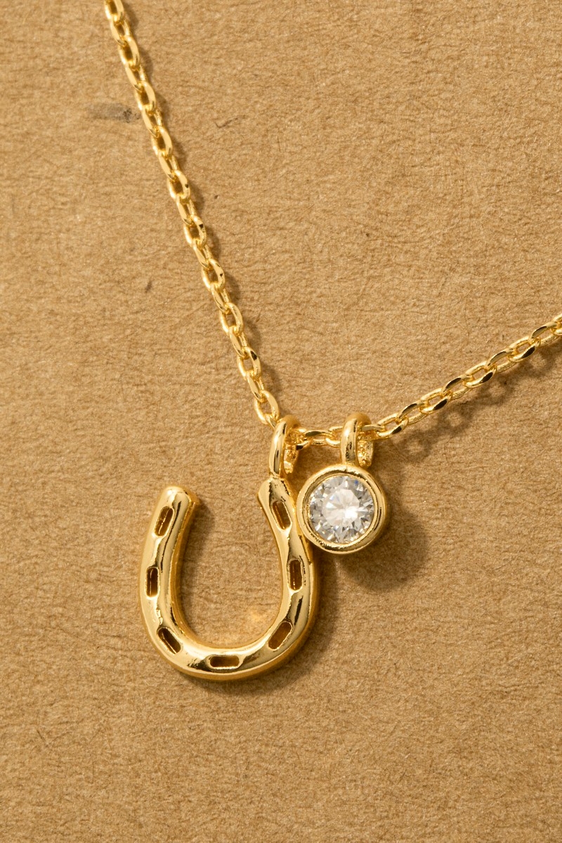 • This trending necklace introduces a stunning gold dipped horse shoe and cubic zirconia charm necklace style. Immerse yourself in fashion finesse with this statement trending necklace.