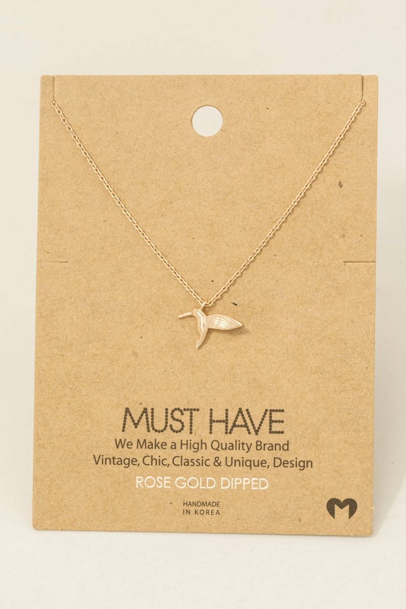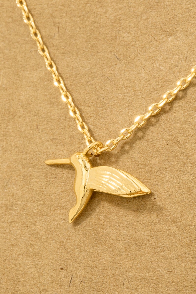 - This trending necklace displays a vibrant gold dipped humming bird pendant necklace style. Savor the allure of detailed craftsmanship in this exquisite trending necklace.