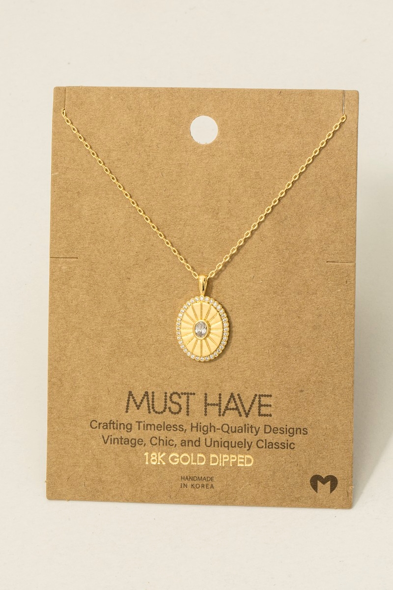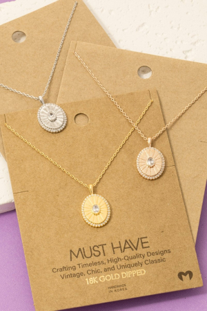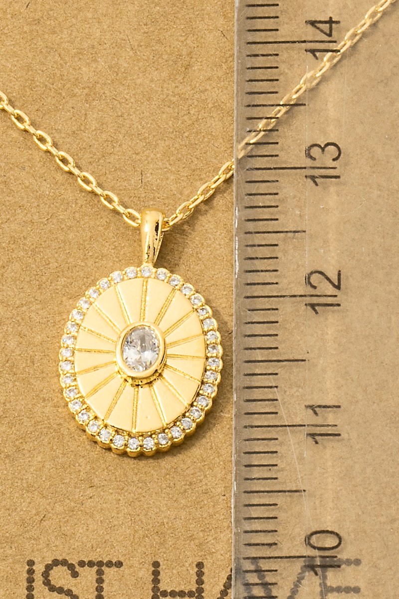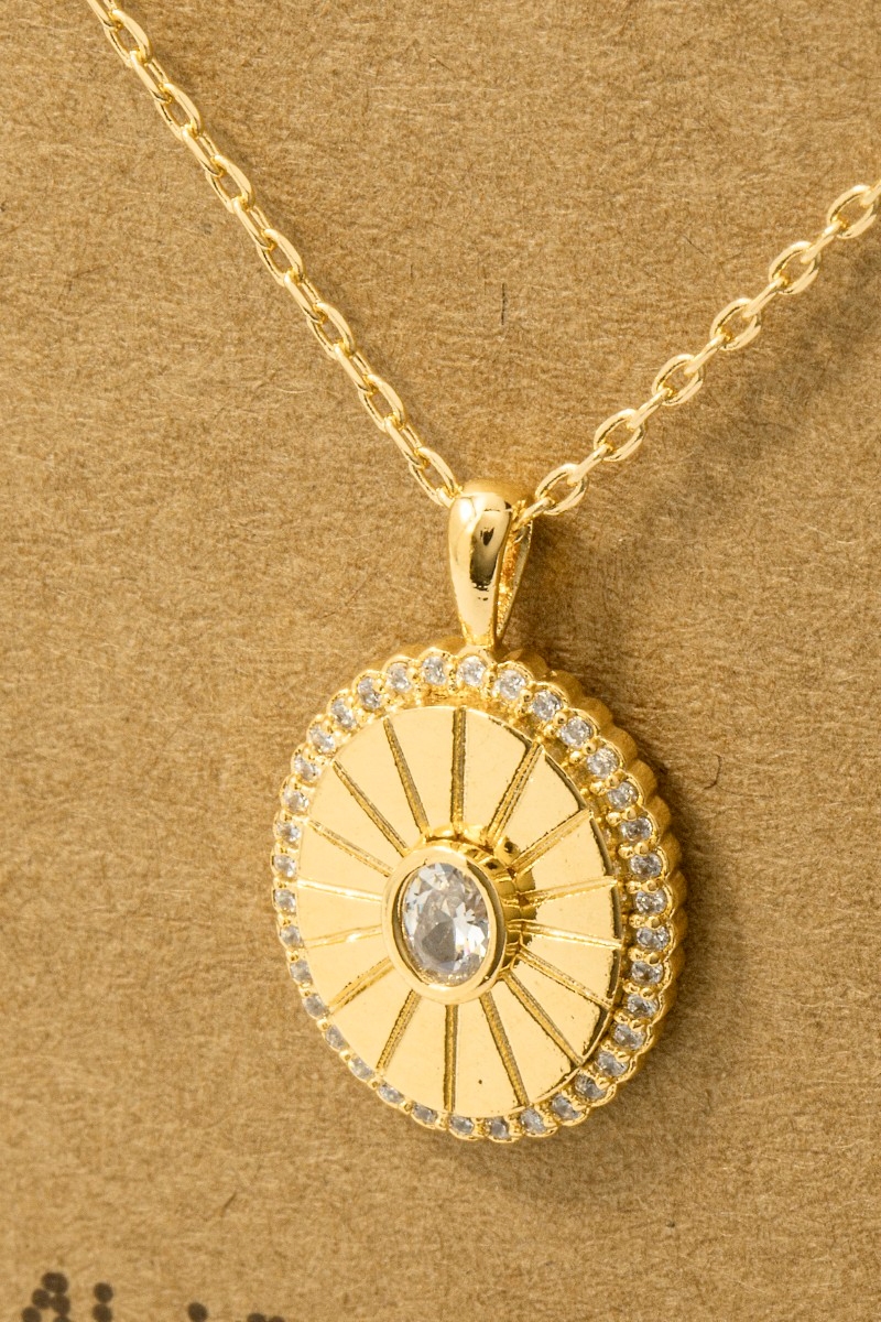 Gold Dipped Circle Cz Gem Pendant Necklace