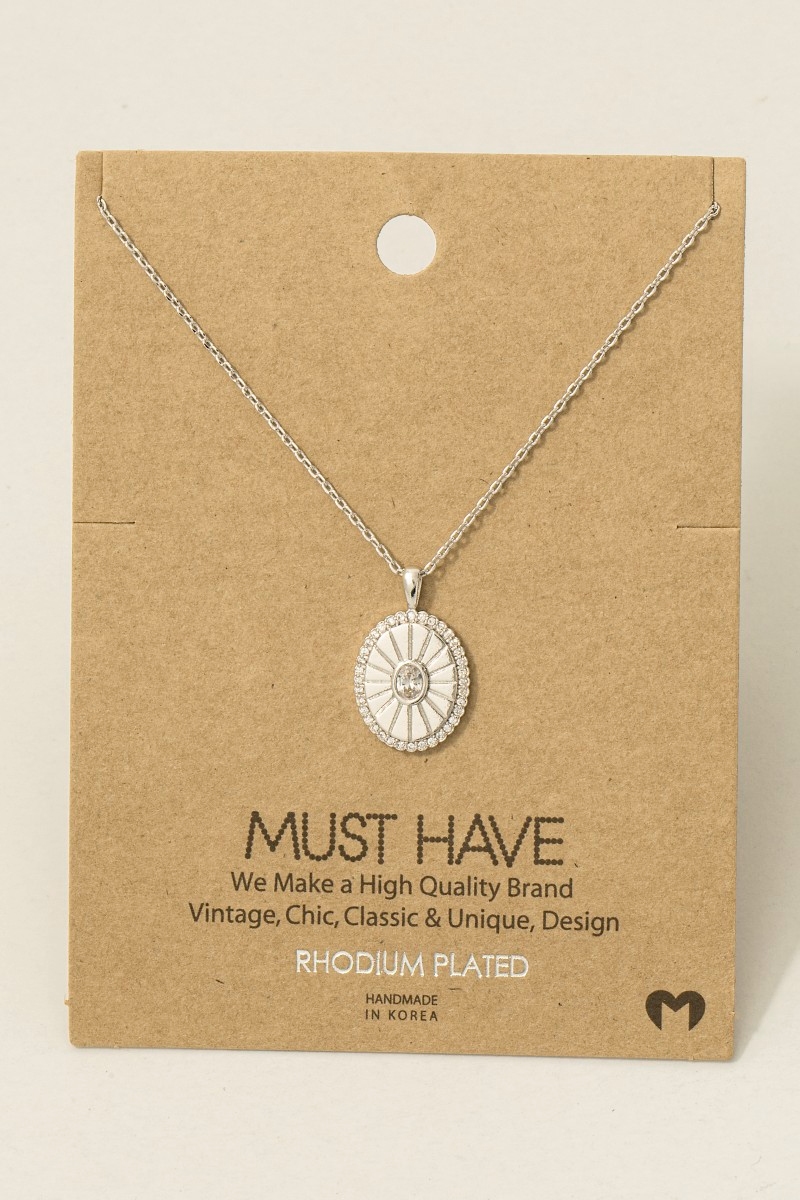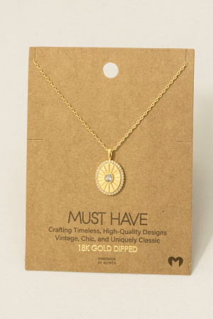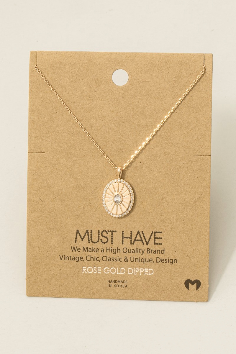 • This trending necklace displays a fashionable gold dipped intricate cubic zirconia halo oval pendant necklace style. Witness the perfect fusion of style and functionality as this trending necklace effortlessly complements your lifestyle.