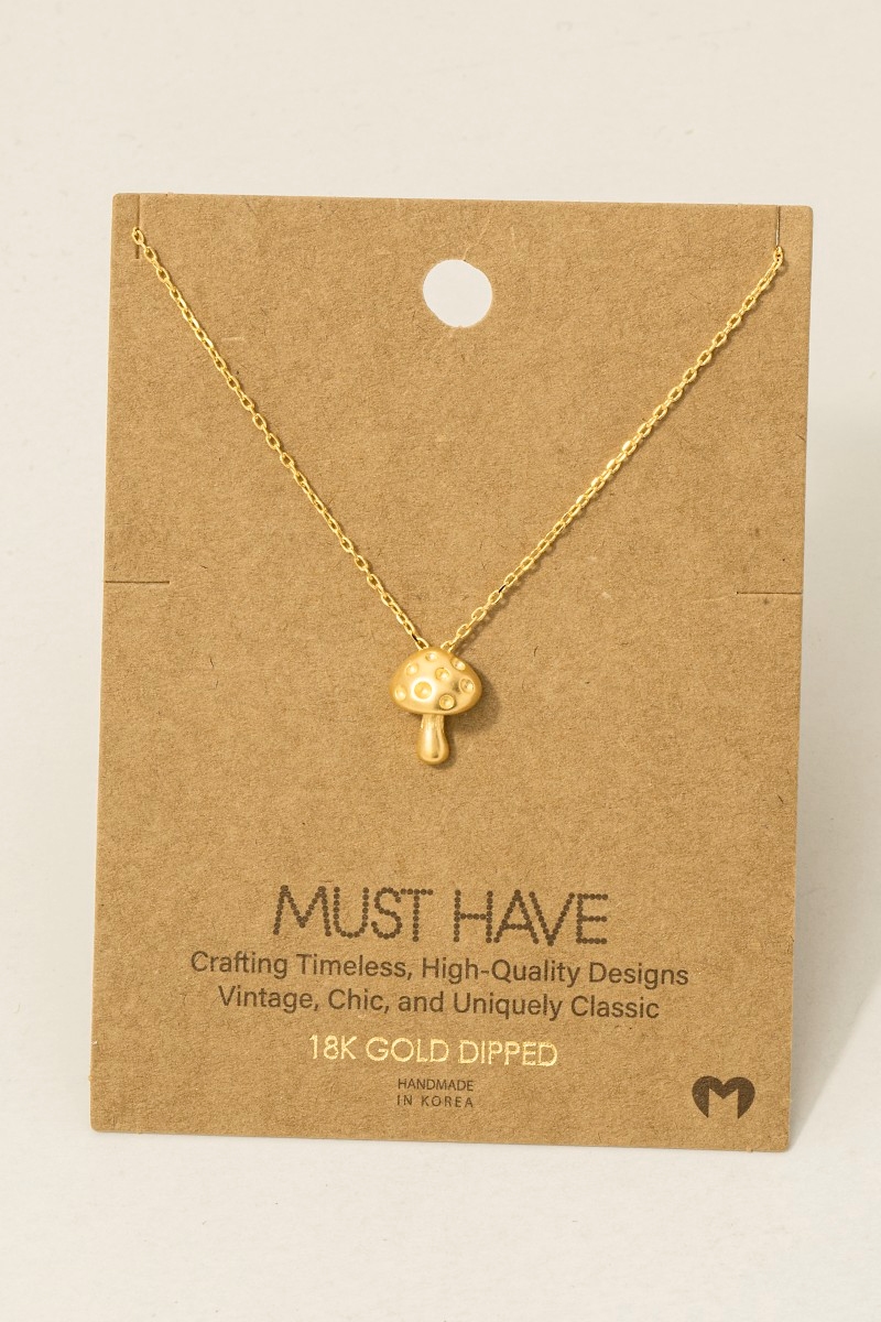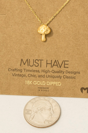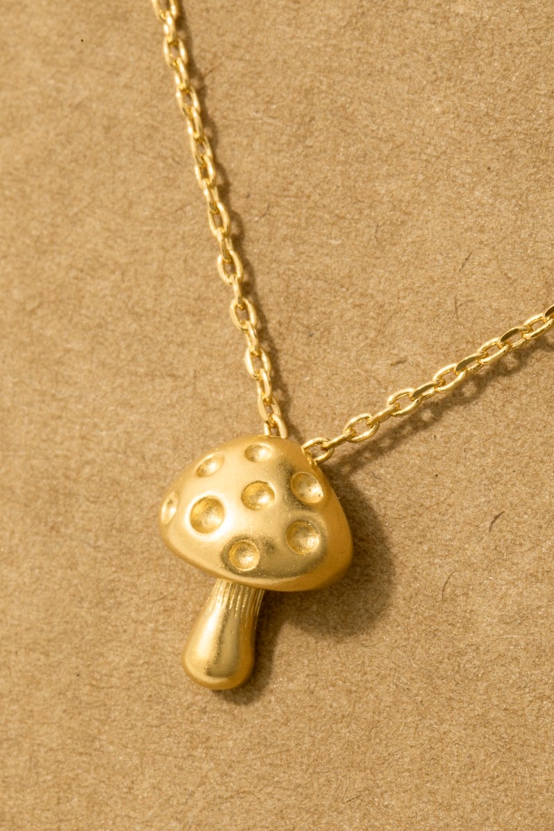 • This trending necklace showcases a timeless gold dipped mini mushroom pendant necklace style. Indulge in the artistry of accessorizing with this unique piece.