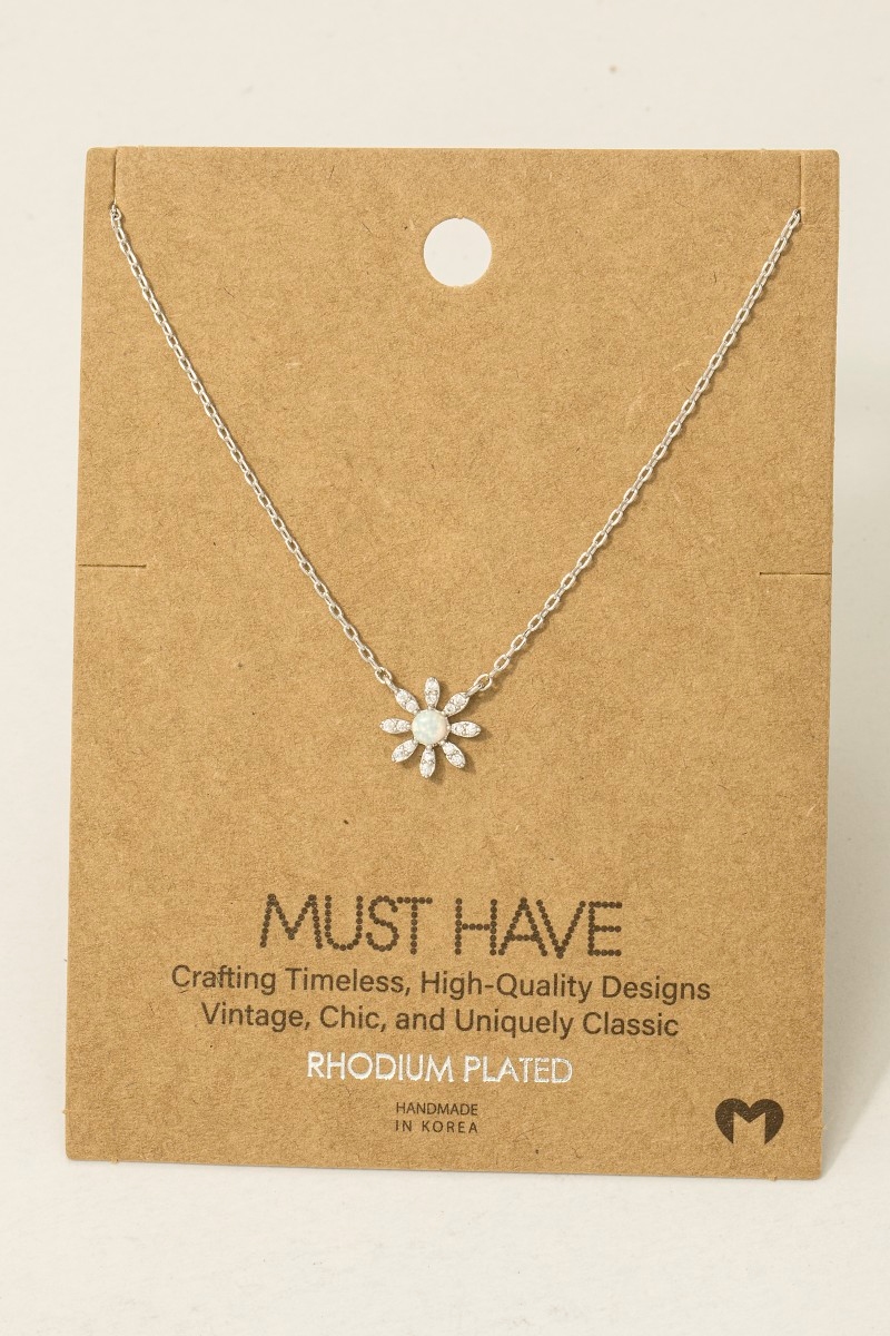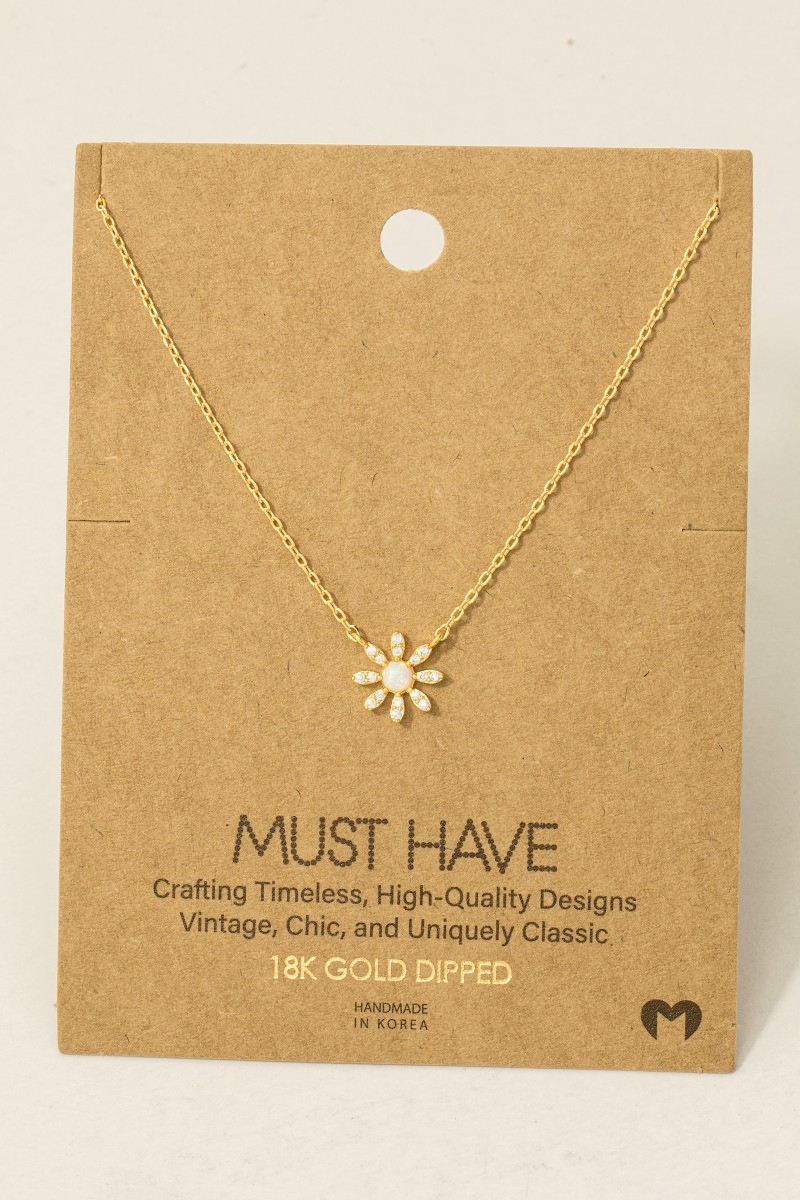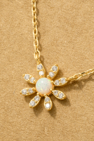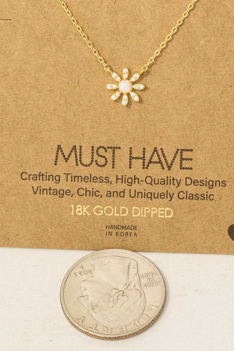 • This trending necklace introduces a stunning gold dipped mini opal flower pendant necklace style. Elevate your ensemble with this chic, timeless trending necklace.