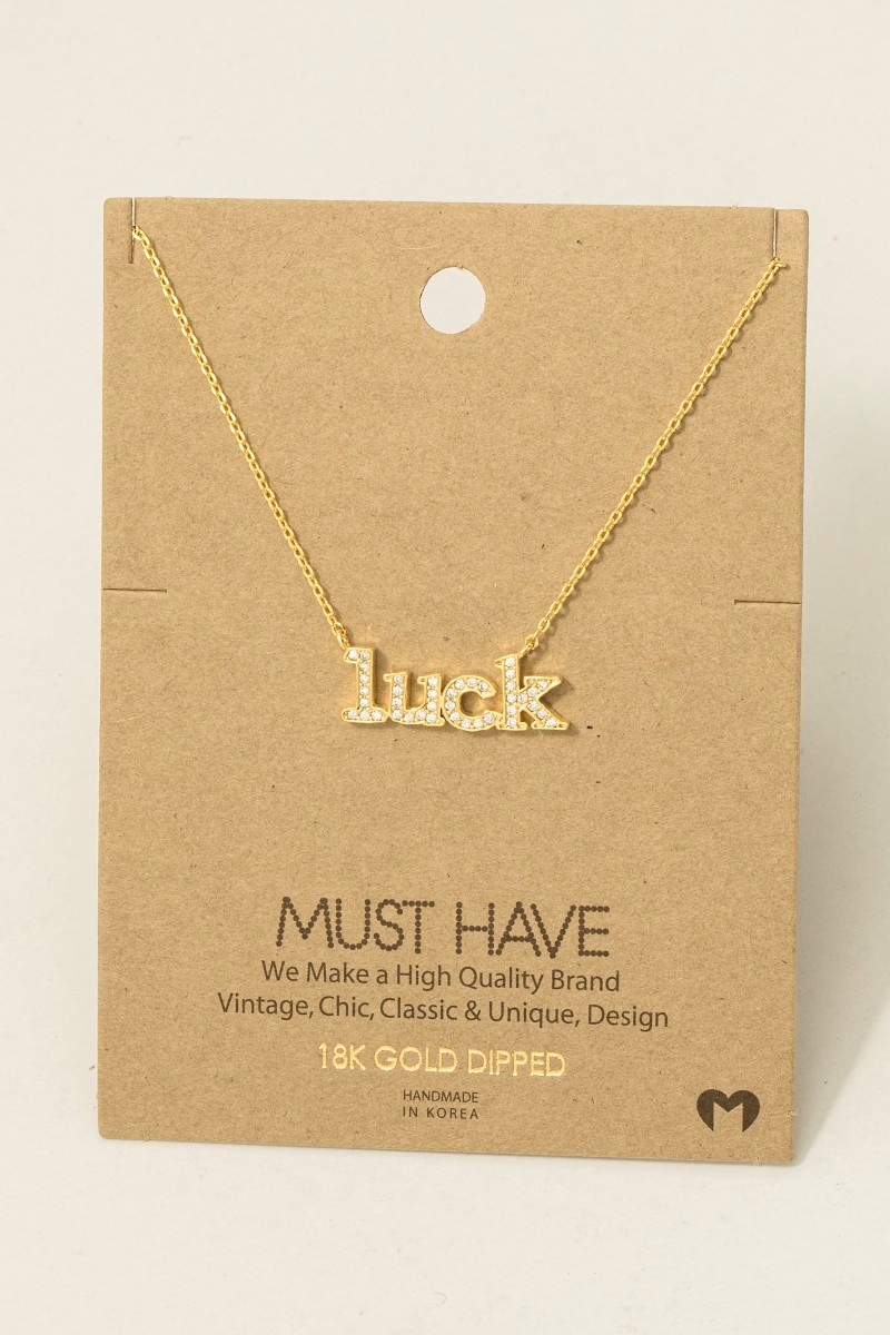 • This trending necklace features a fashionable gold dipped pave luck pendant necklace style. Explore a refined sense of style with this trending necklace, seamlessly elevating the chic factor of your look.
