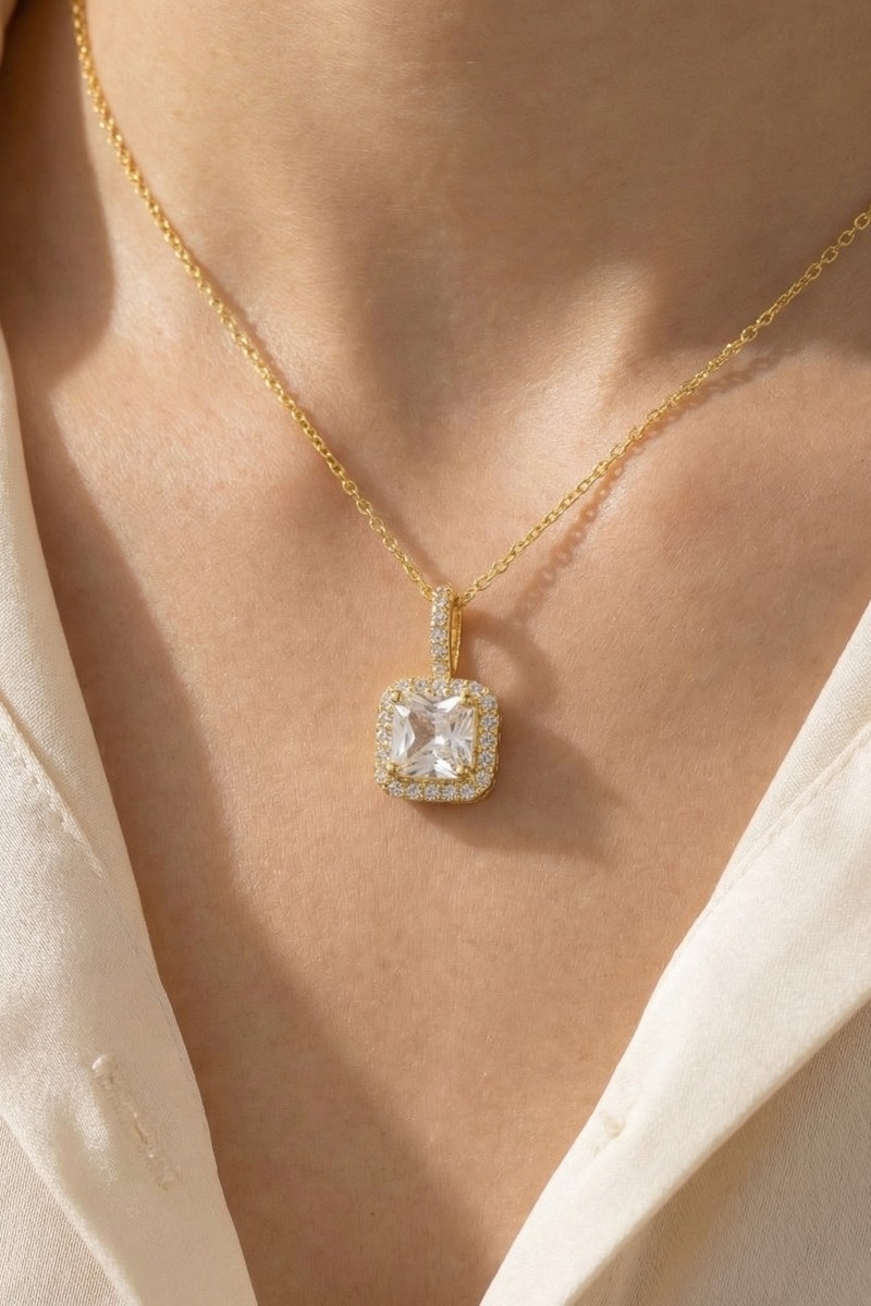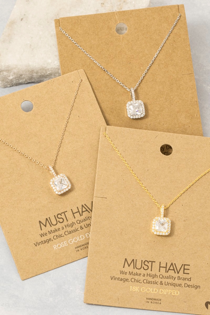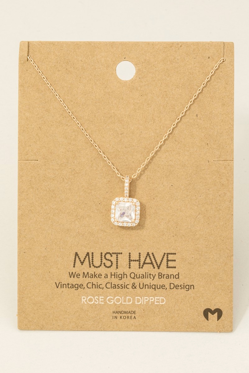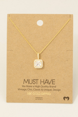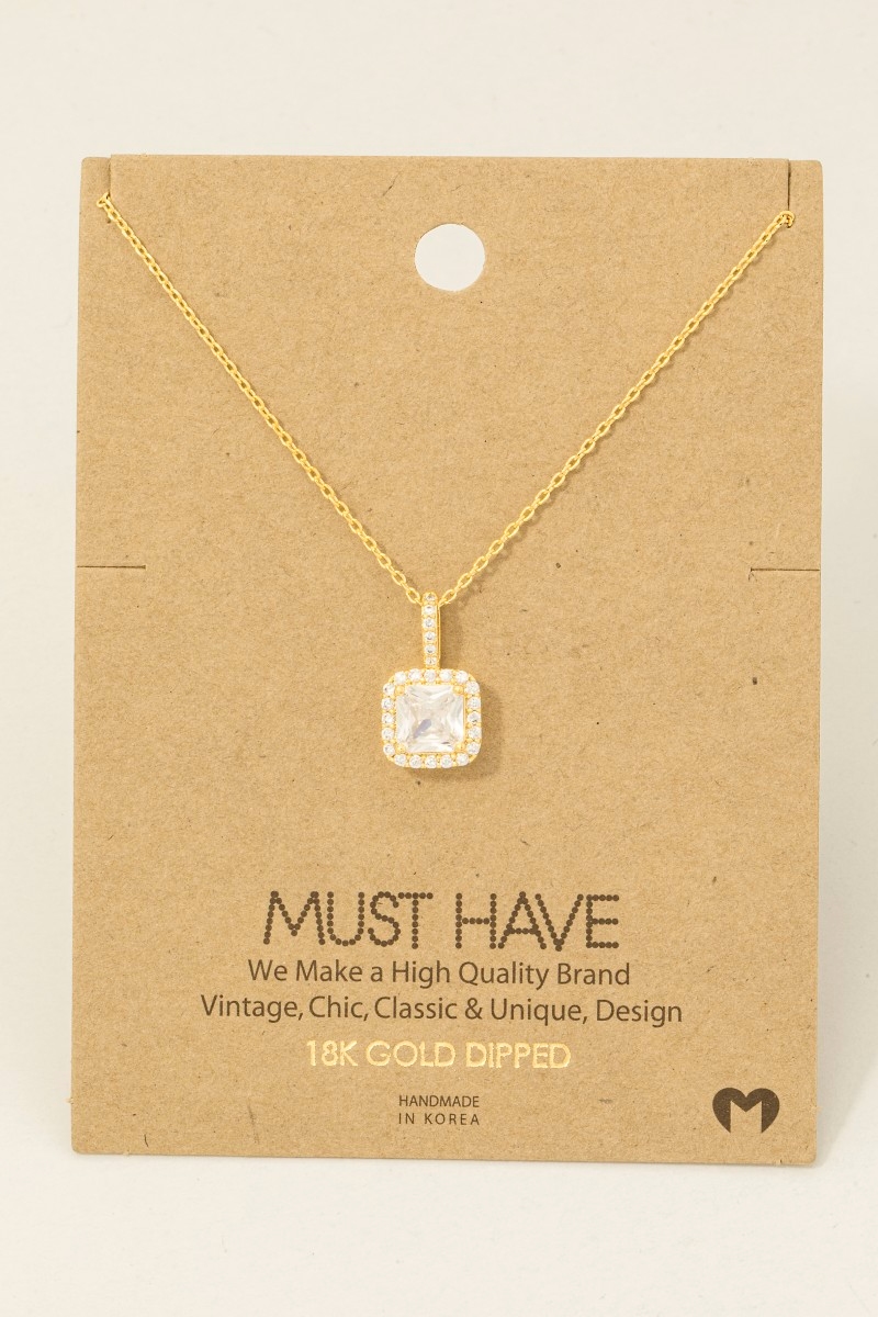 - This trending necklace displays a vibrant gold dipped square rhinestone pendant necklace style. Experience the joy of accessorizing with this piece that effortlessly combines versatility and charm.