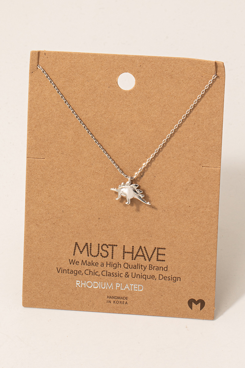 - This necklace displays a vibrant gold dipped stegosaurus dinosaur pendant style. Step into a world of refined taste as this necklace effortlessly refines the details of your outfit.
