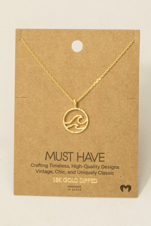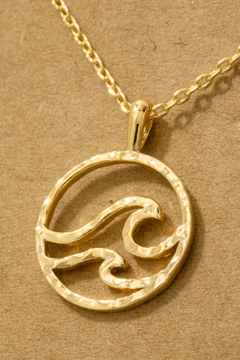 • This trending necklace displays a vibrant gold dipped wave coin pendant necklace style. Indulge in the allure of exquisite craftsmanship as this trending necklace effortlessly adds a touch of luxury to your attire.
