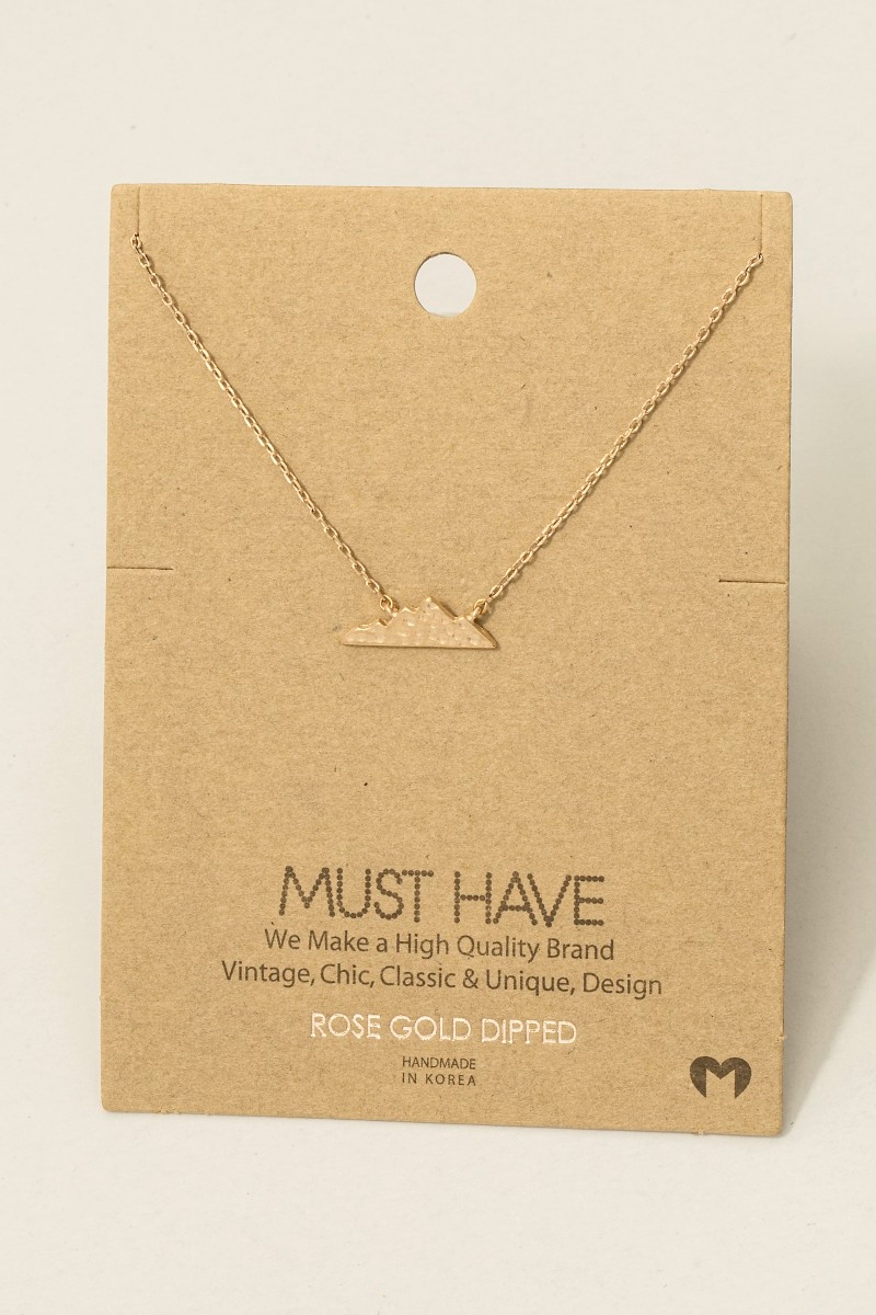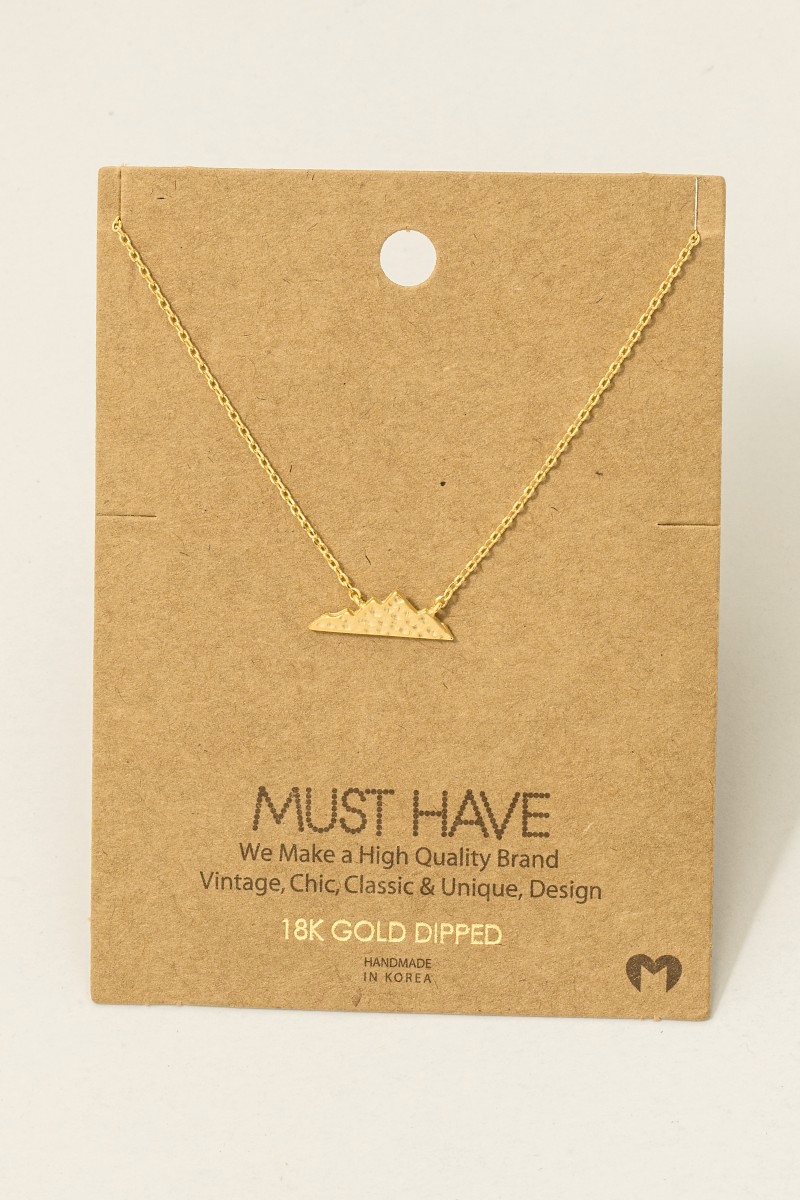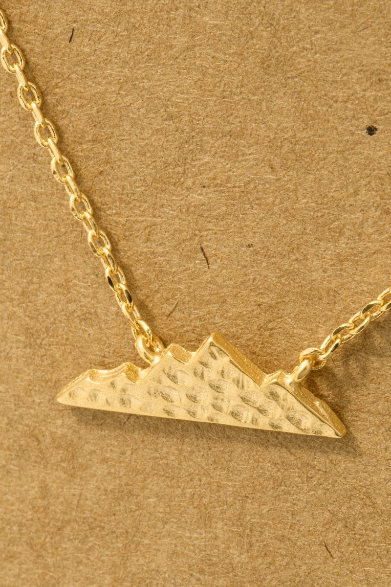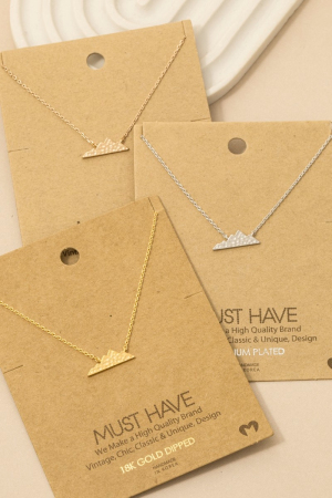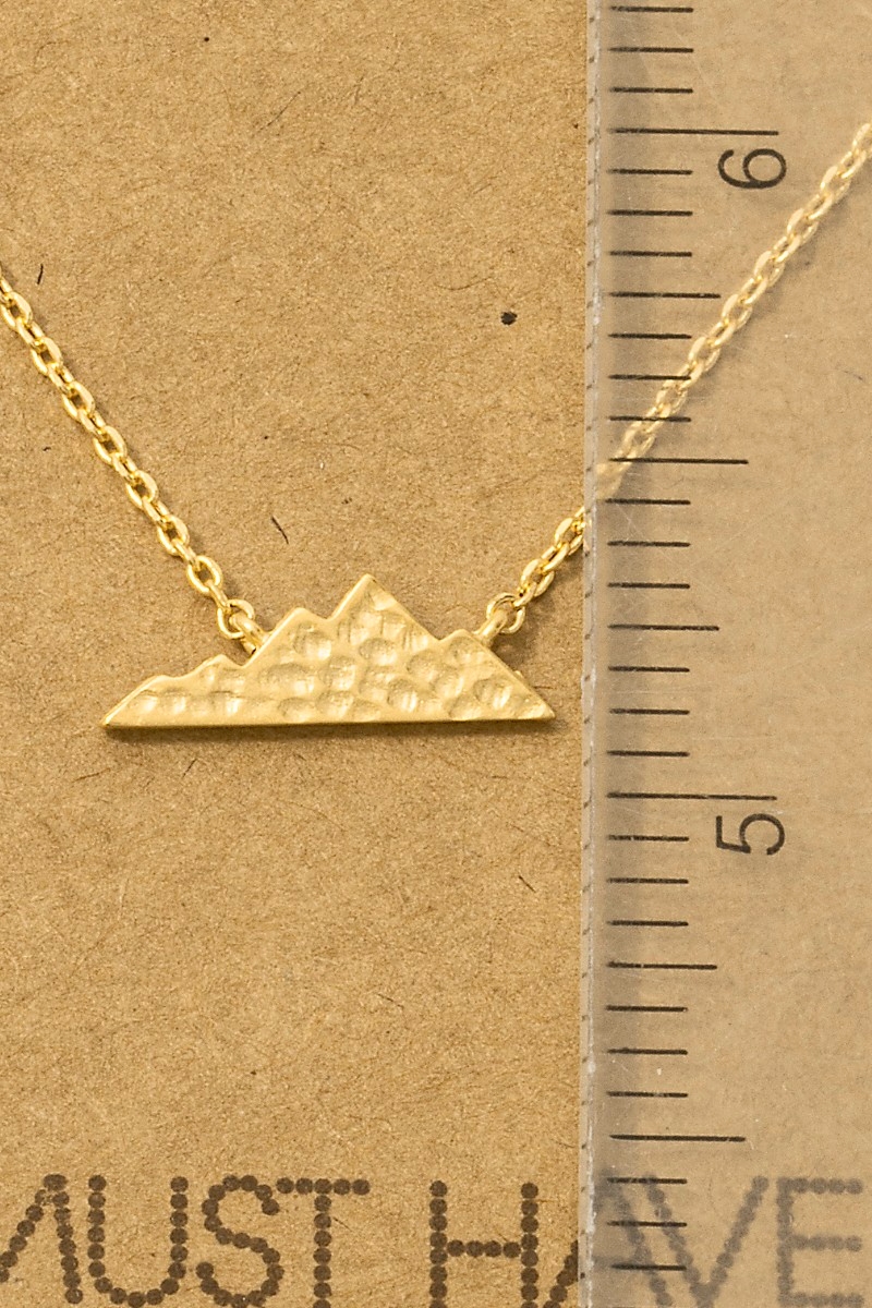 • This trending necklace introduces a unique hammered mountain pendant necklace style. Savor the allure of detailed craftsmanship in this exquisite trending necklace.