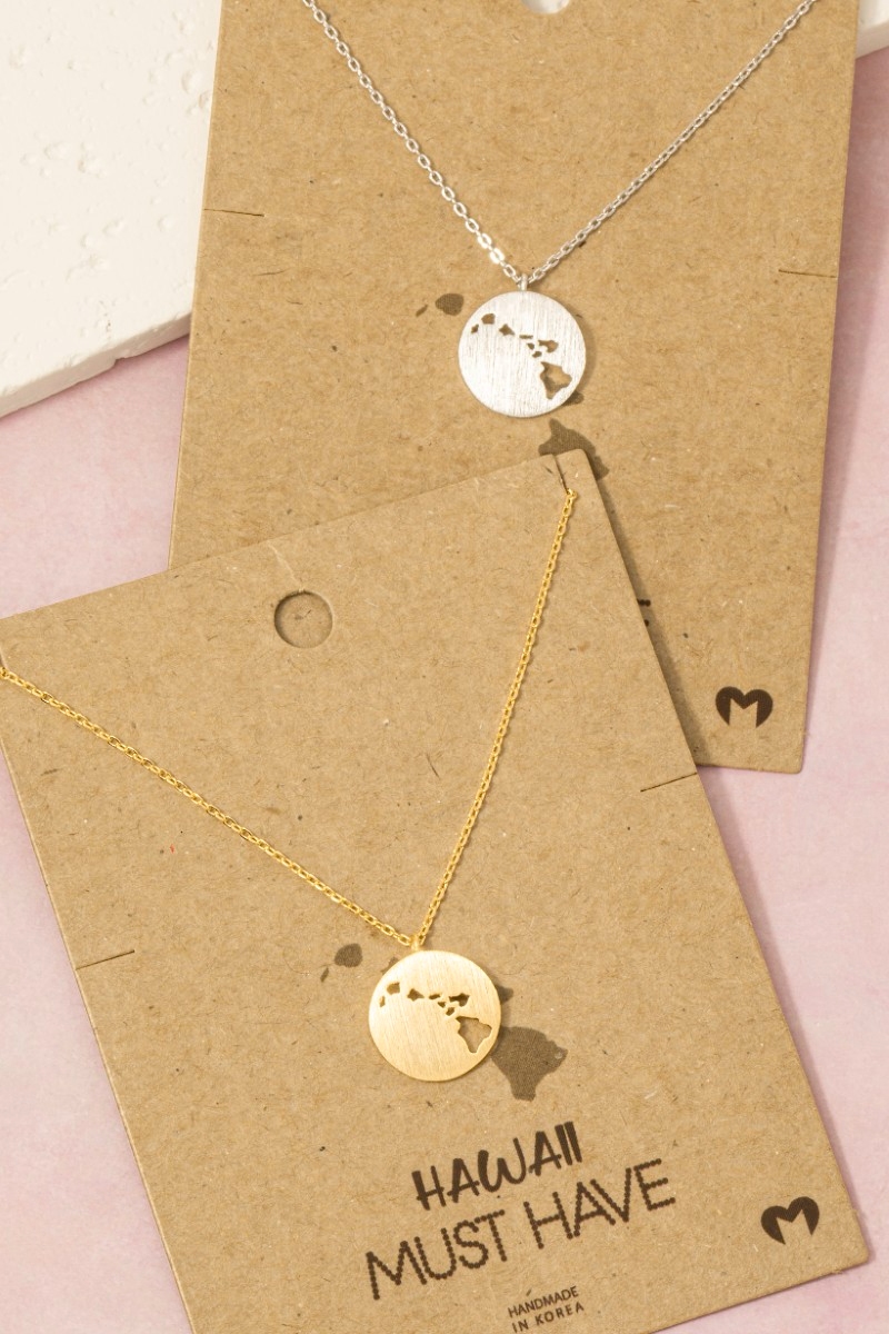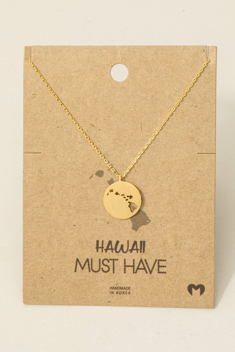 - This trending necklace brings a luxurious hawaii coin cutout disc pendant necklace style. Witness the perfect fusion of style and functionality as this trending necklace effortlessly complements your lifestyle.