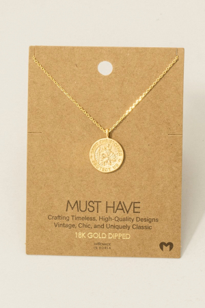 Gold Dipped Intricate Coin Pendant Necklace