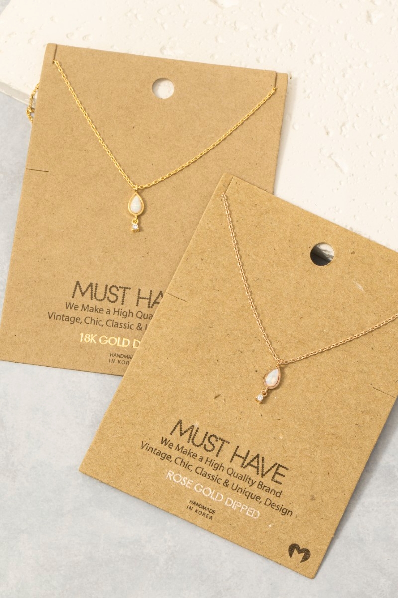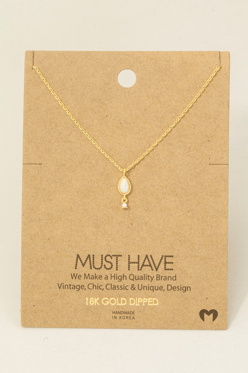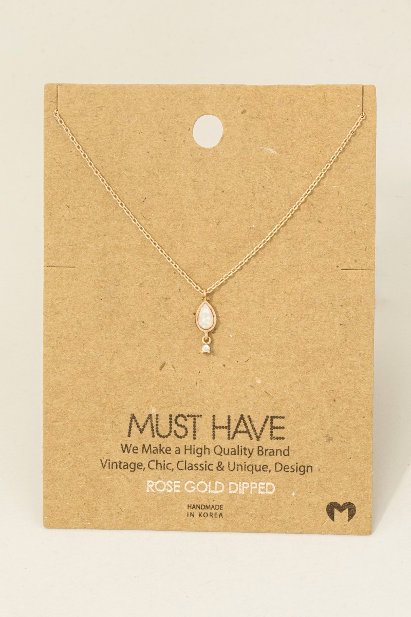 • This trending necklace introduces a unique opal teardrop pendant necklace style. Unveil modern elegance with this subtly intricate trending necklace.