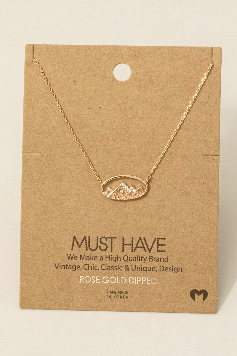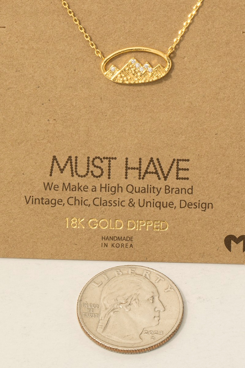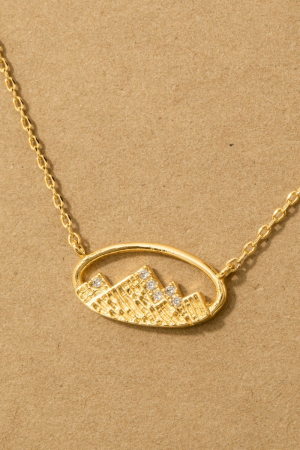 • This trending necklace displays a vibrant oval mountain range charm necklace style. Discover the perfect balance of subtlety and flair as this trending necklace effortlessly completes your look.