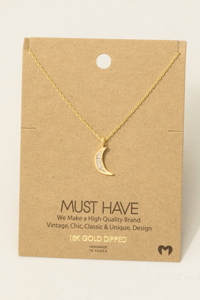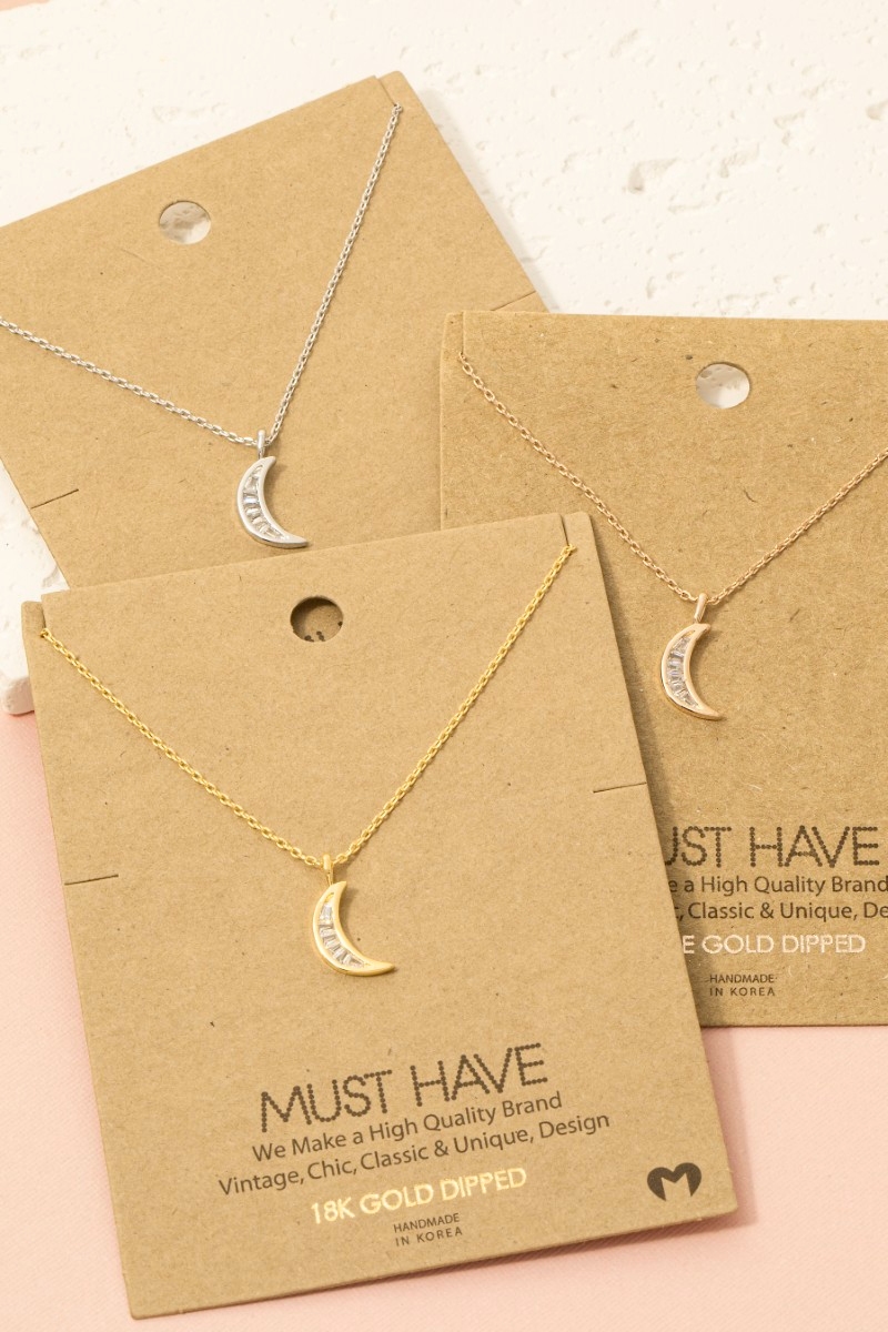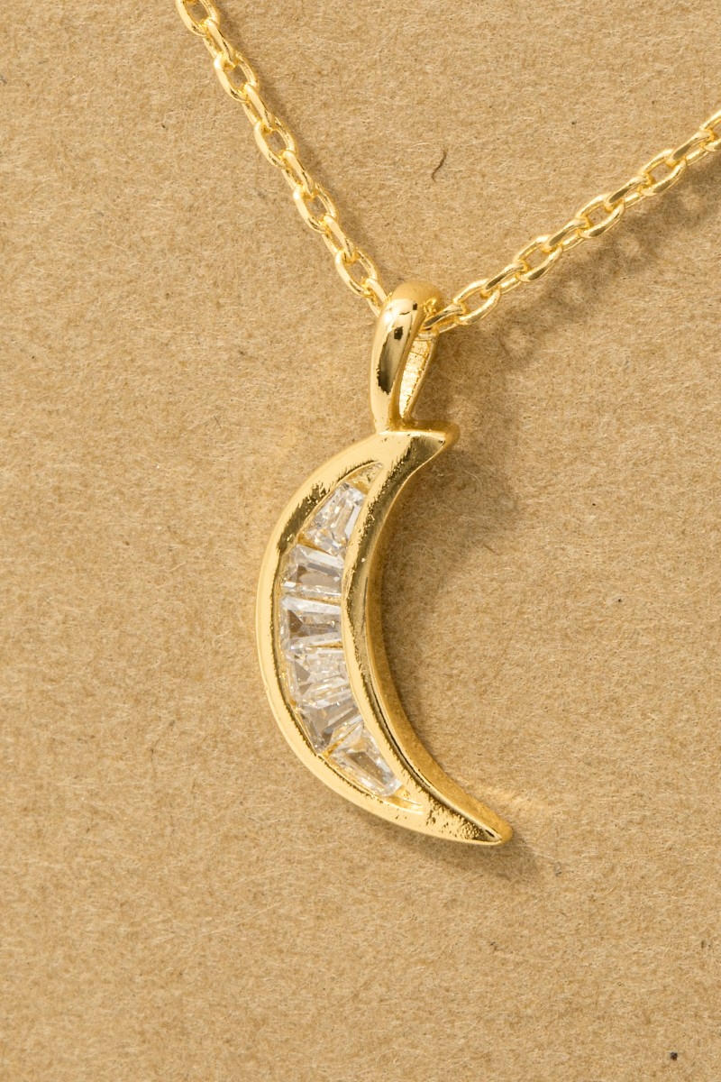 • This trending necklace introduces a stunning pave crescent moon pendant necklace style. Indulge in the artistry of accessorizing with this unique piece.
