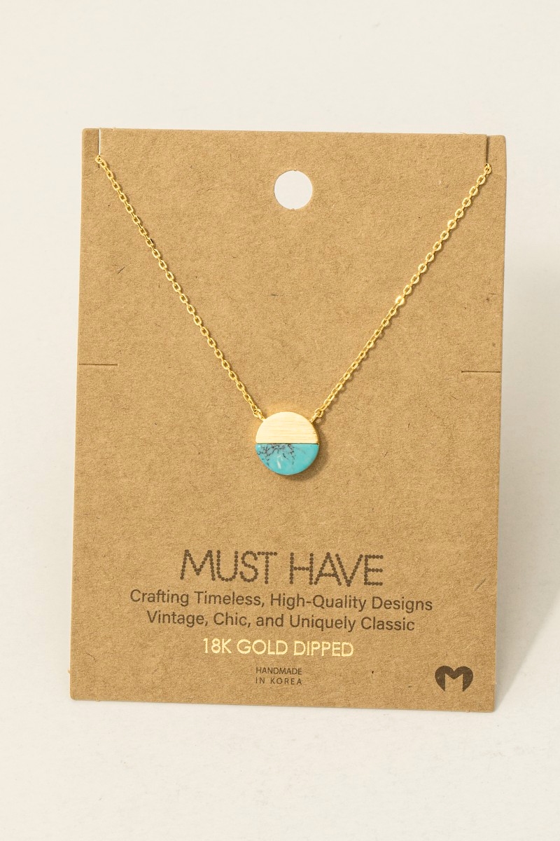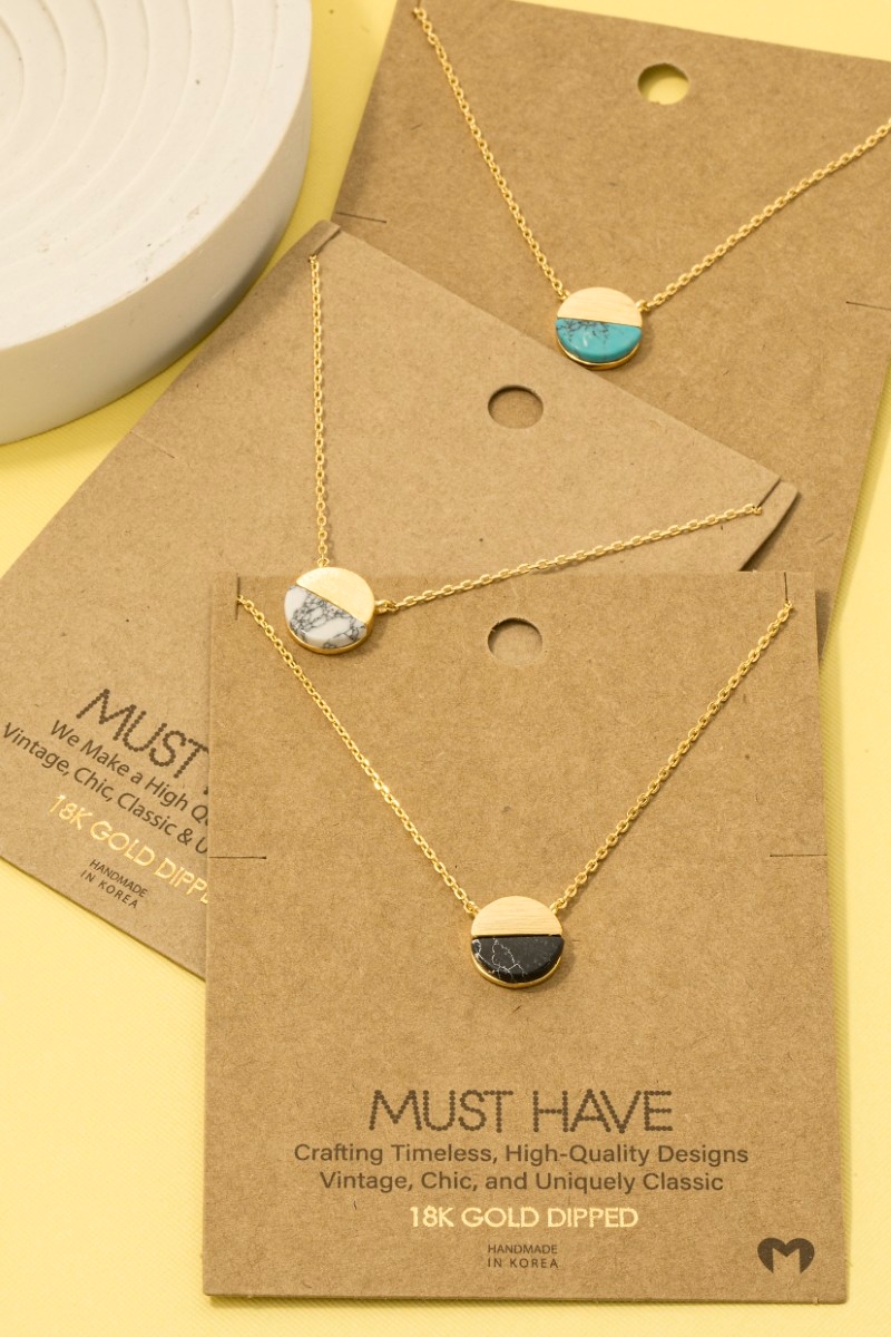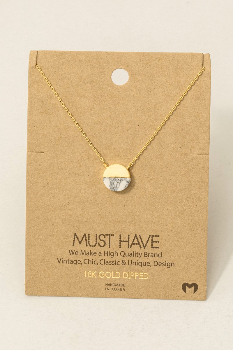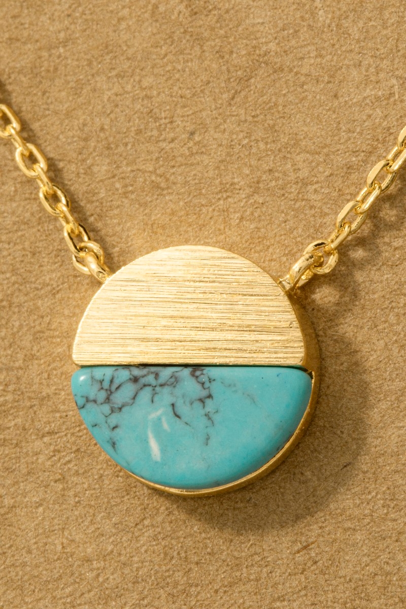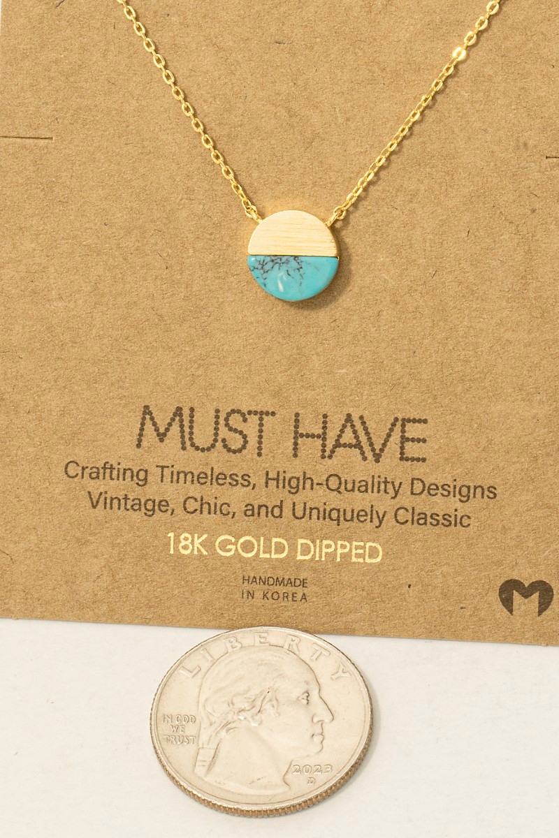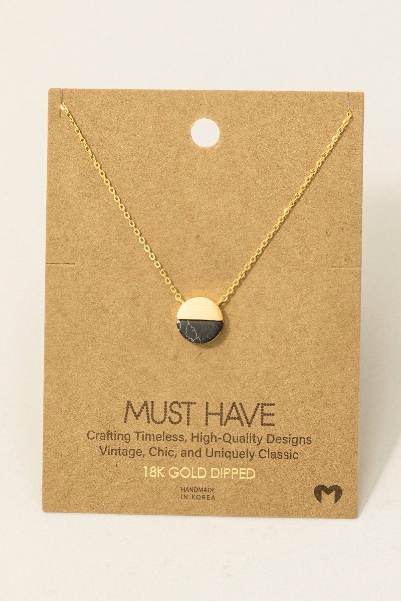 • This trending necklace showcases a timeless round half stone pendant necklace style. Celebrate individuality with this trending necklace that effortlessly expresses your unique sense of style.