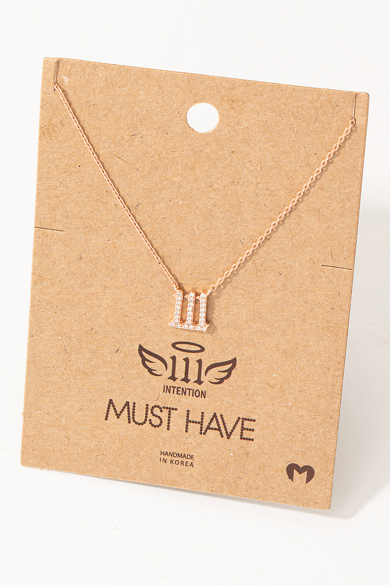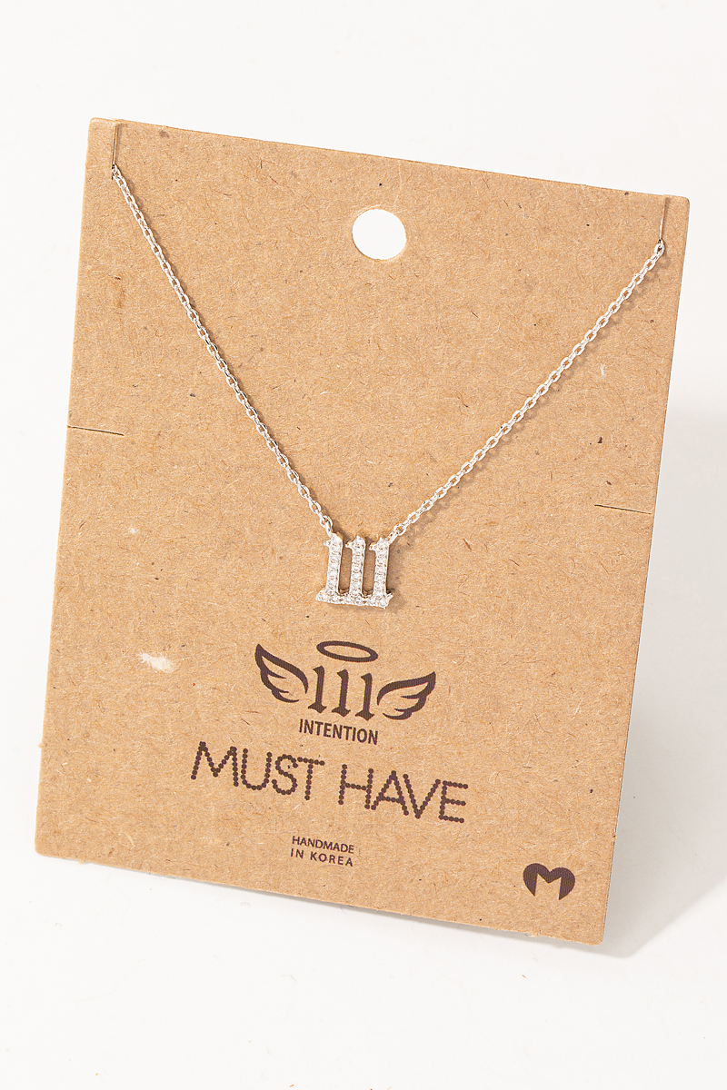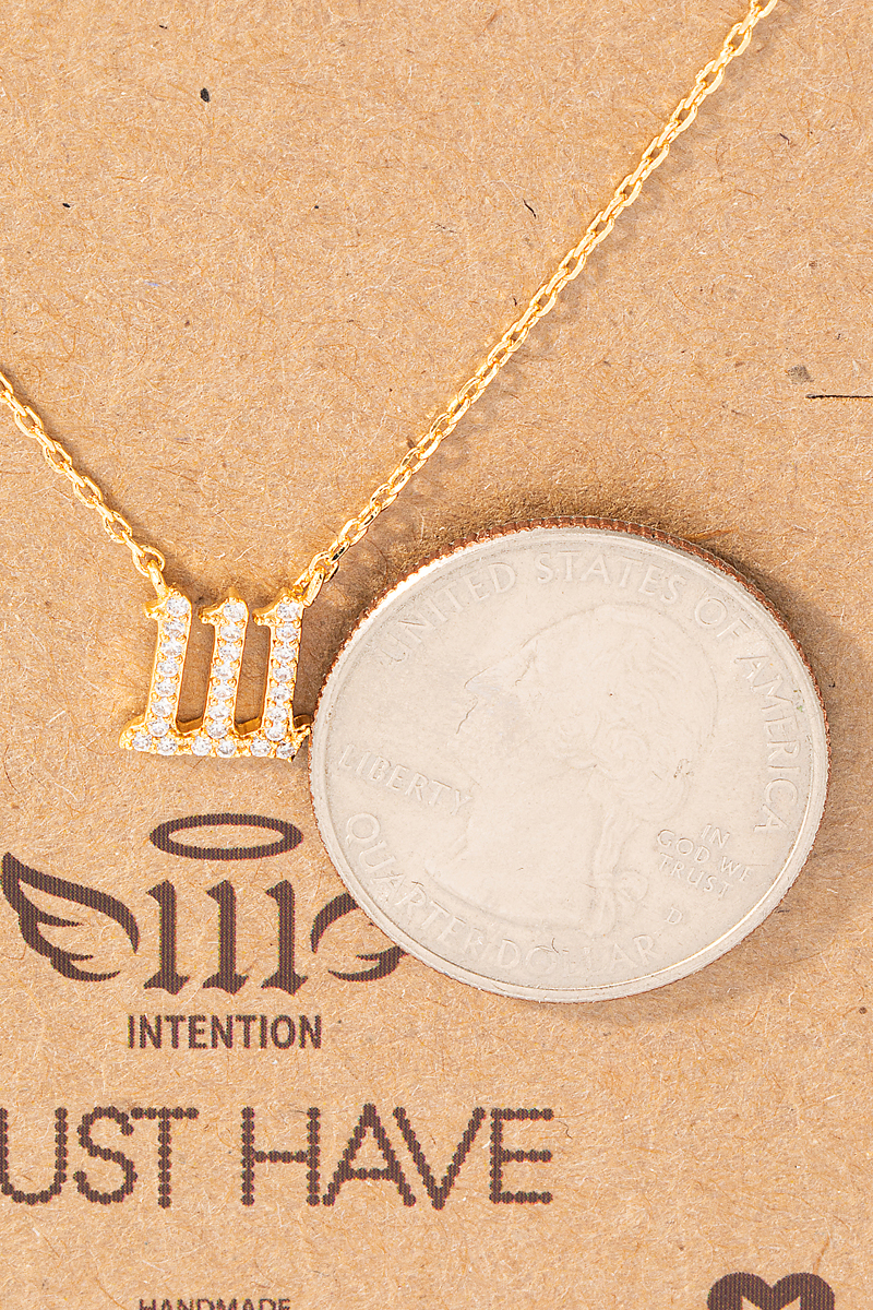 - This trending necklace introduces a stunning pave 111 angel number pendant necklace style. Revel in the intricate design that effortlessly distinguishes this trending necklace, making it a statement piece.