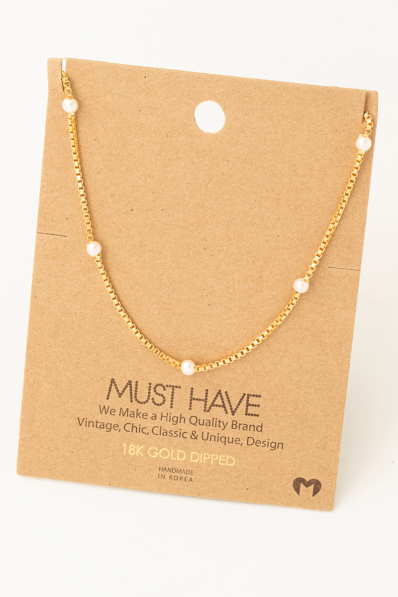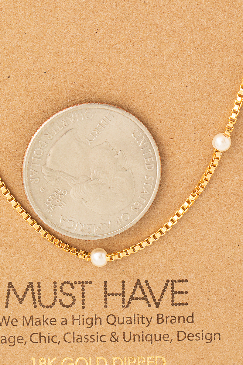 • This necklace introduces a unique box chain pearl station style. Witness the perfect fusion of style and functionality as this necklace effortlessly complements your lifestyle.