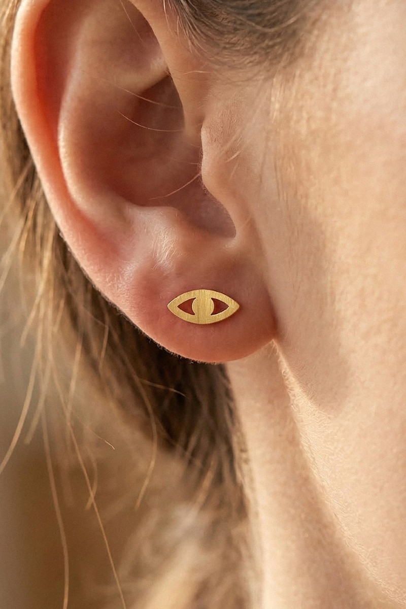 - This pair of stud earrings displays a vibrant evil eye style. Redefine your look effortlessly with this standout, on-trend piece.