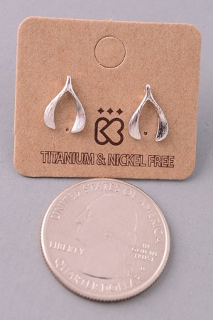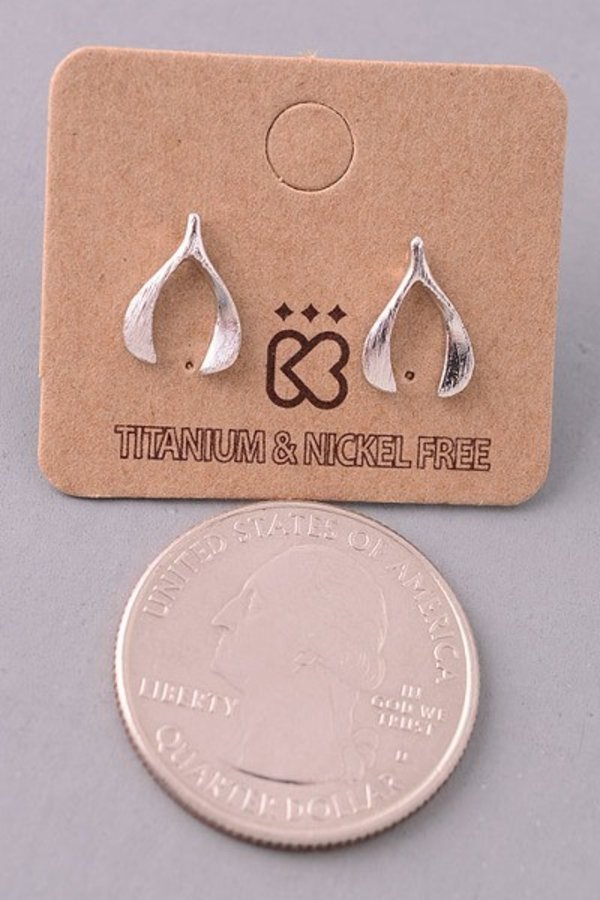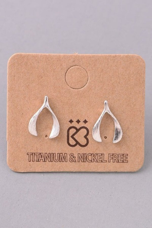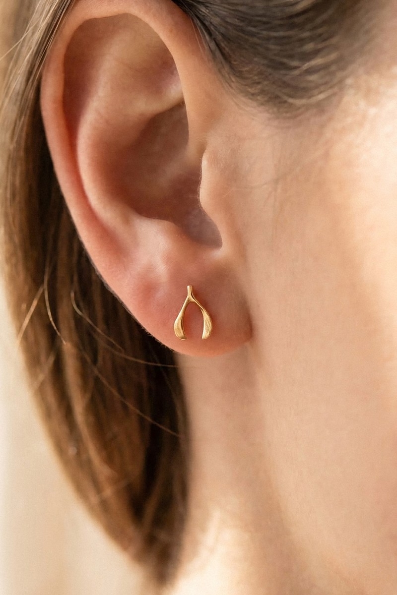 - This pair of stud earrings showcases a unique mini wishbone style. Indulge in the artistry of accessorizing with this unique piece.