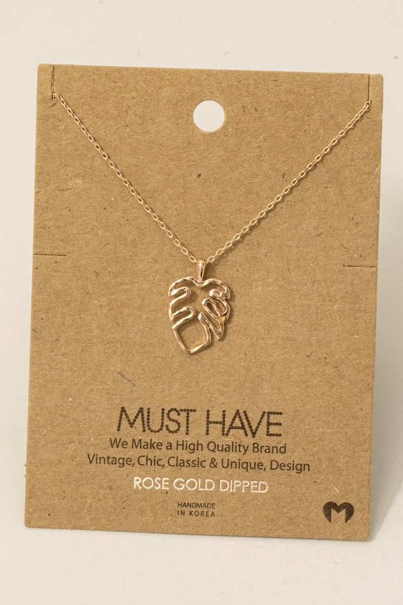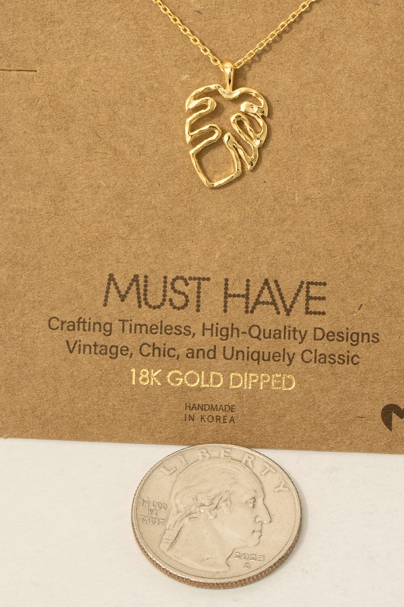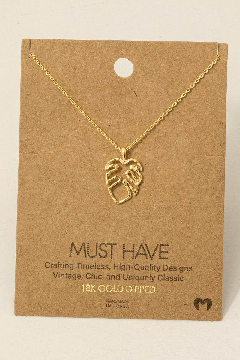 - This trending necklace introduces a unique monstera cutout pendant necklace style. Delight in the nuanced details that make this trending necklace a testament to fine design and impeccable taste.