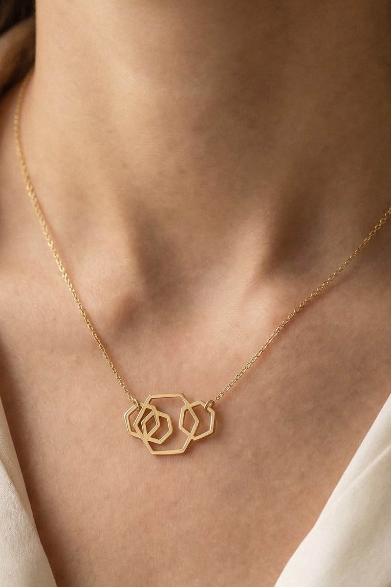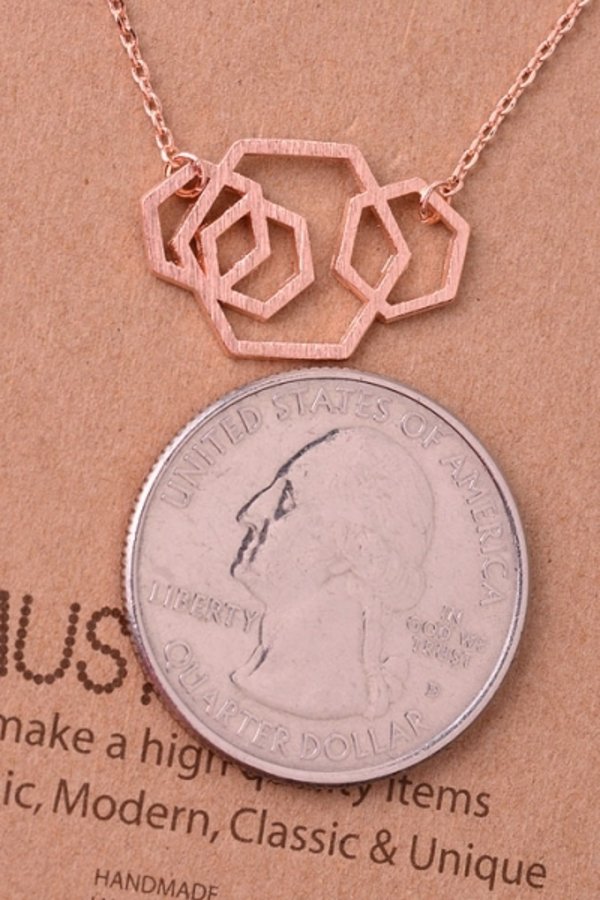 - This pendant necklace brings a unique multiple geometric hexagon link style. Step into a world of refined taste as this pendant necklace effortlessly refines the details of your outfit.