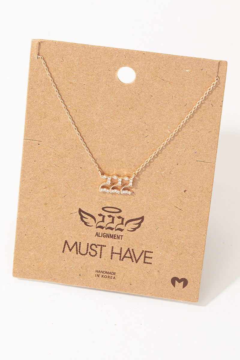 - Experience powerful and positive energies with our Angel Number Necklace! This beautiful piece of jewelry features angel numbers made from our MUST HAVE Collection. Wear the Angel number that is meaningful to you as a source of comfort, protection, and guidance in your daily life.