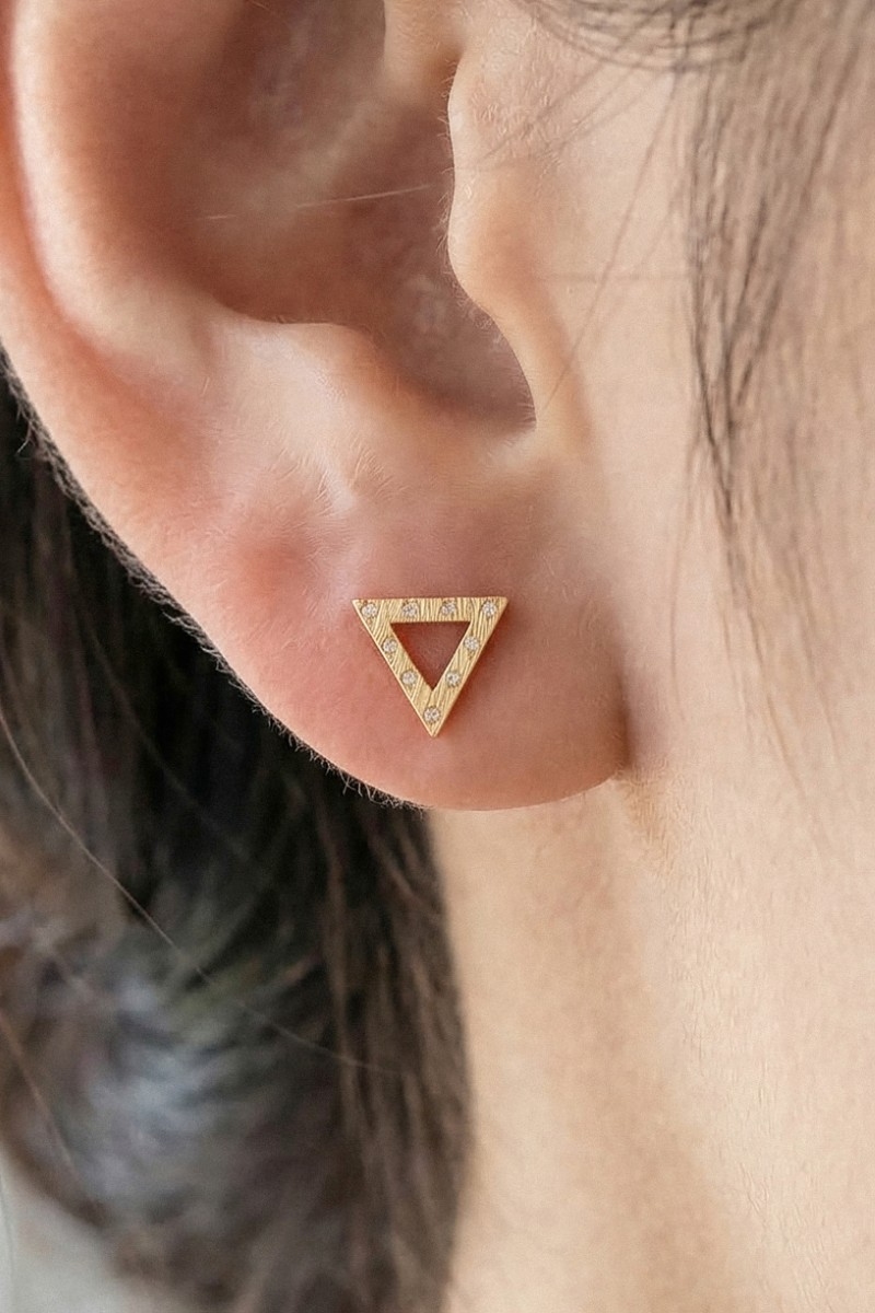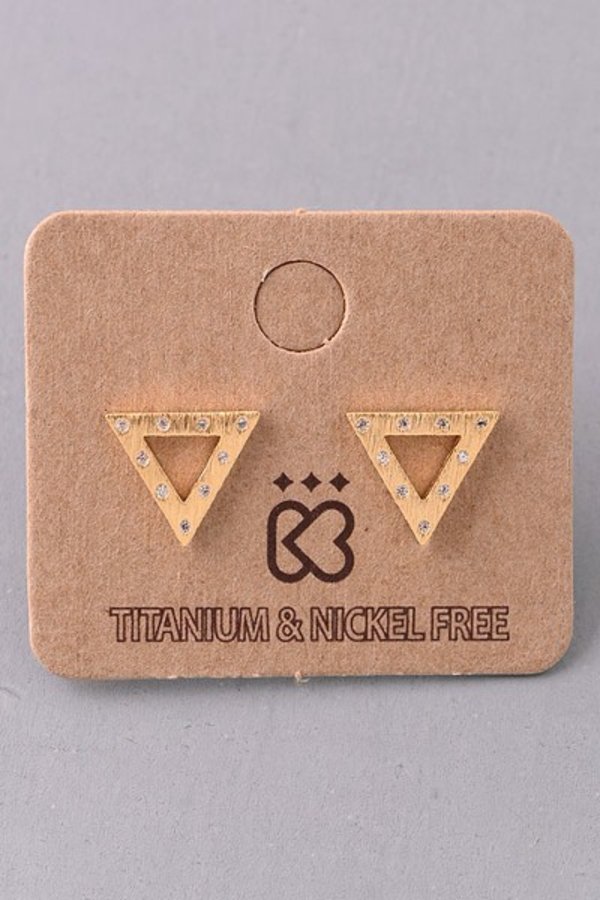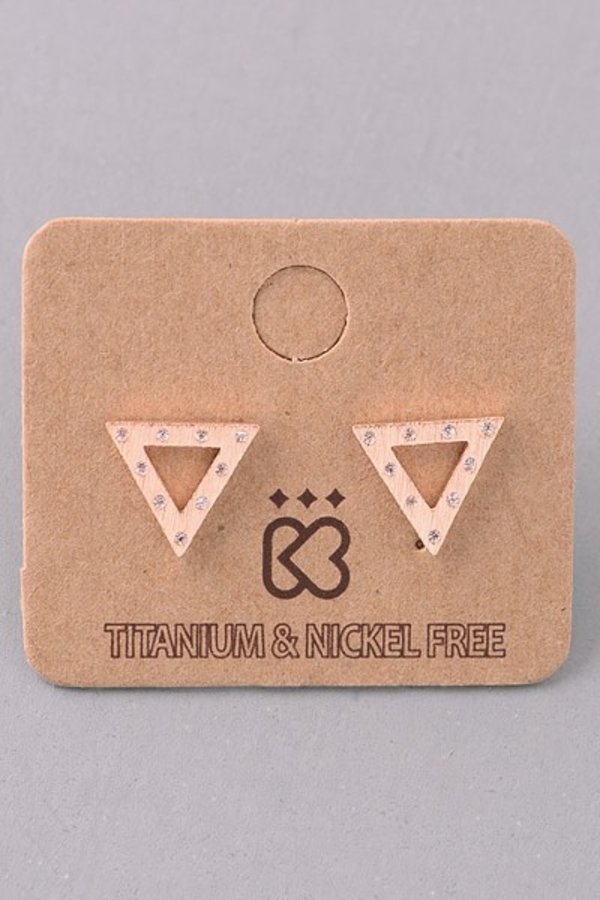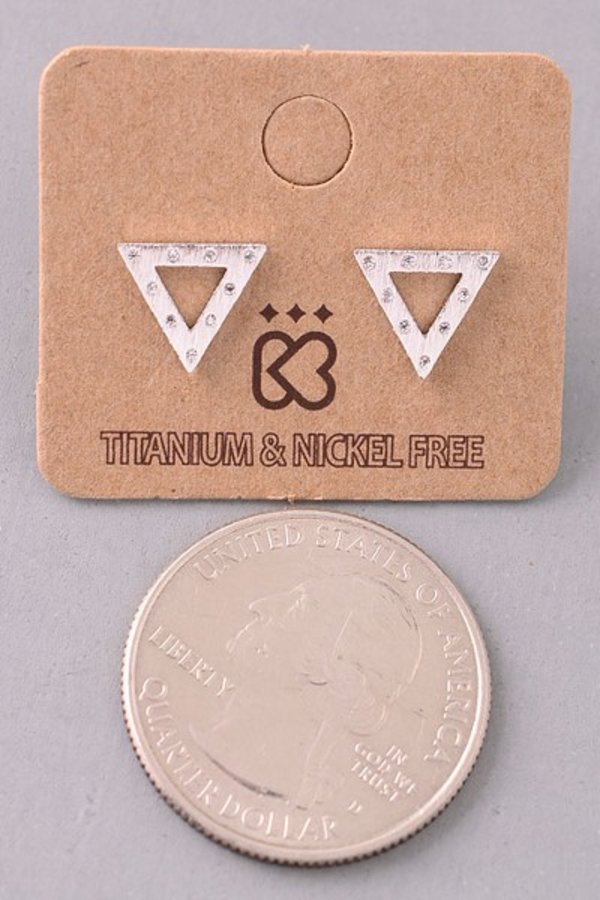 - This pair of stud earrings adds a modern rhinestone lined triangle style. Witness the transformative power of accessories as this piece effortlessly redefines your fashion narrative.