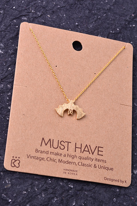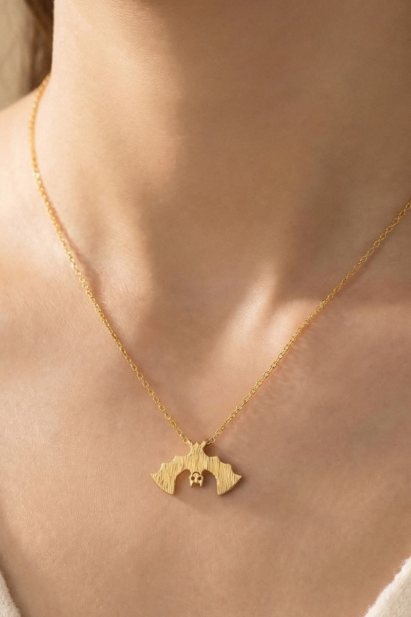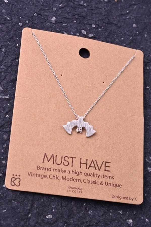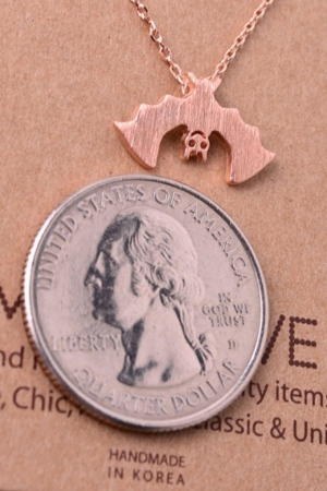 - This pendant necklace brings a stunning upside down bat style. Indulge in the artistry of accessorizing with this unique piece.
