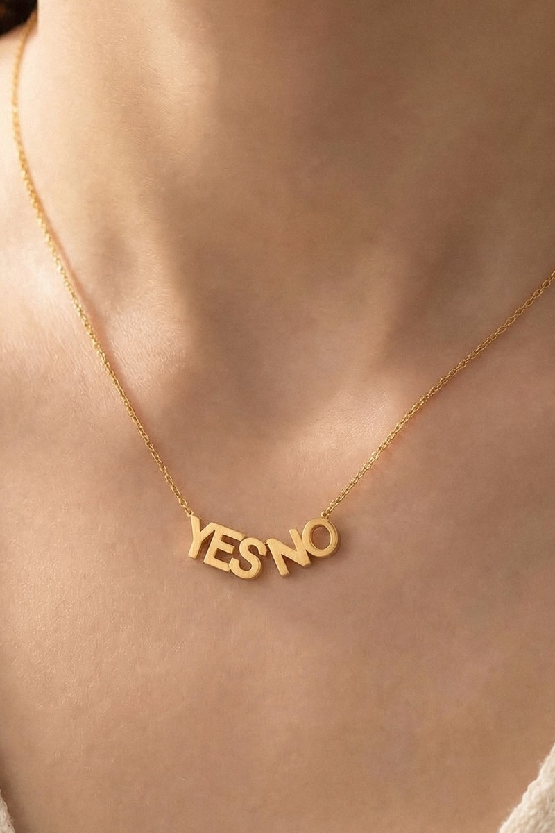 - This pendant necklace showcases a unique yes no style. Discover the perfect balance of functionality and fashion.