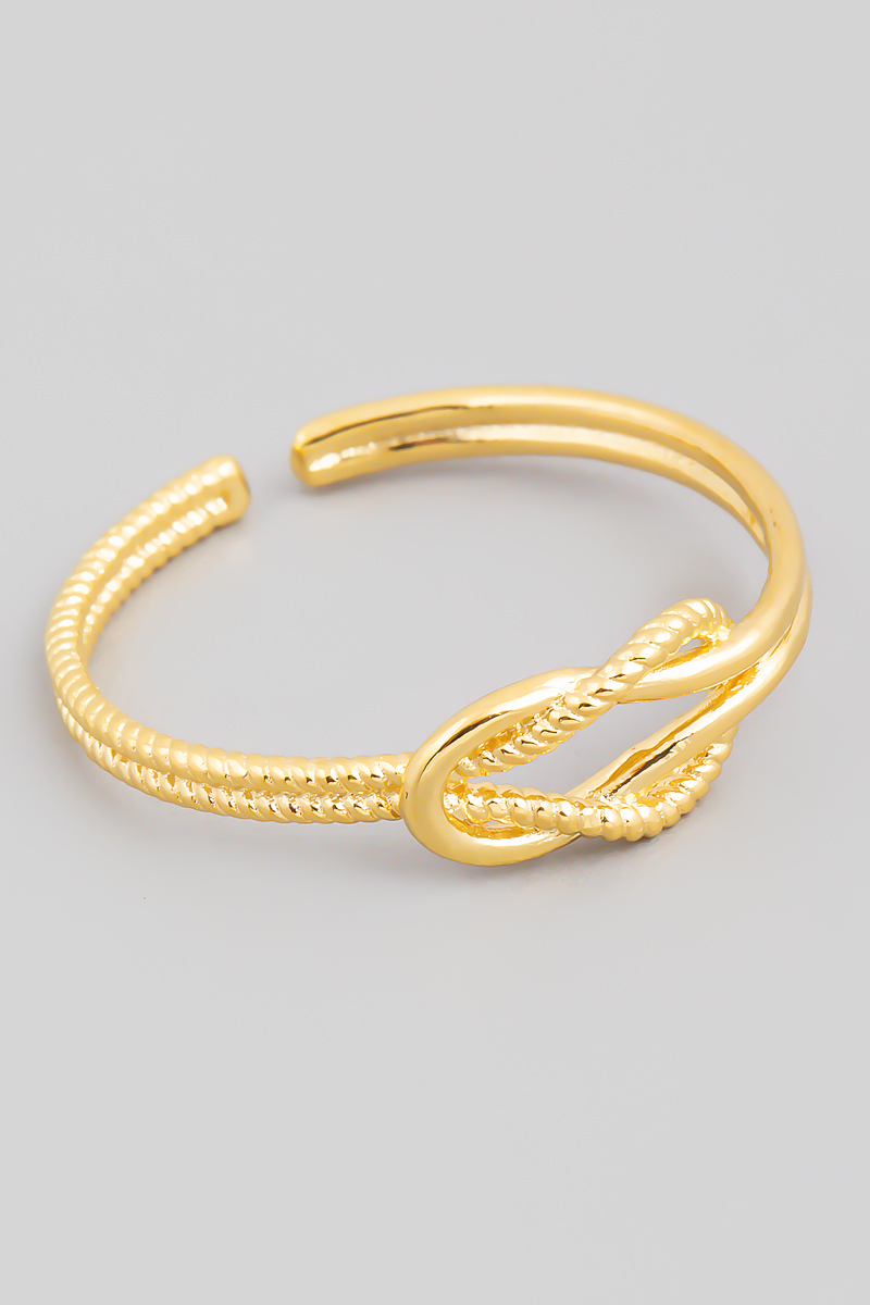 - This ring displays a fashionable gold dipped metallic knot minimalist style. Celebrate the art of accessorizing with this piece that effortlessly encapsulates modern trends.