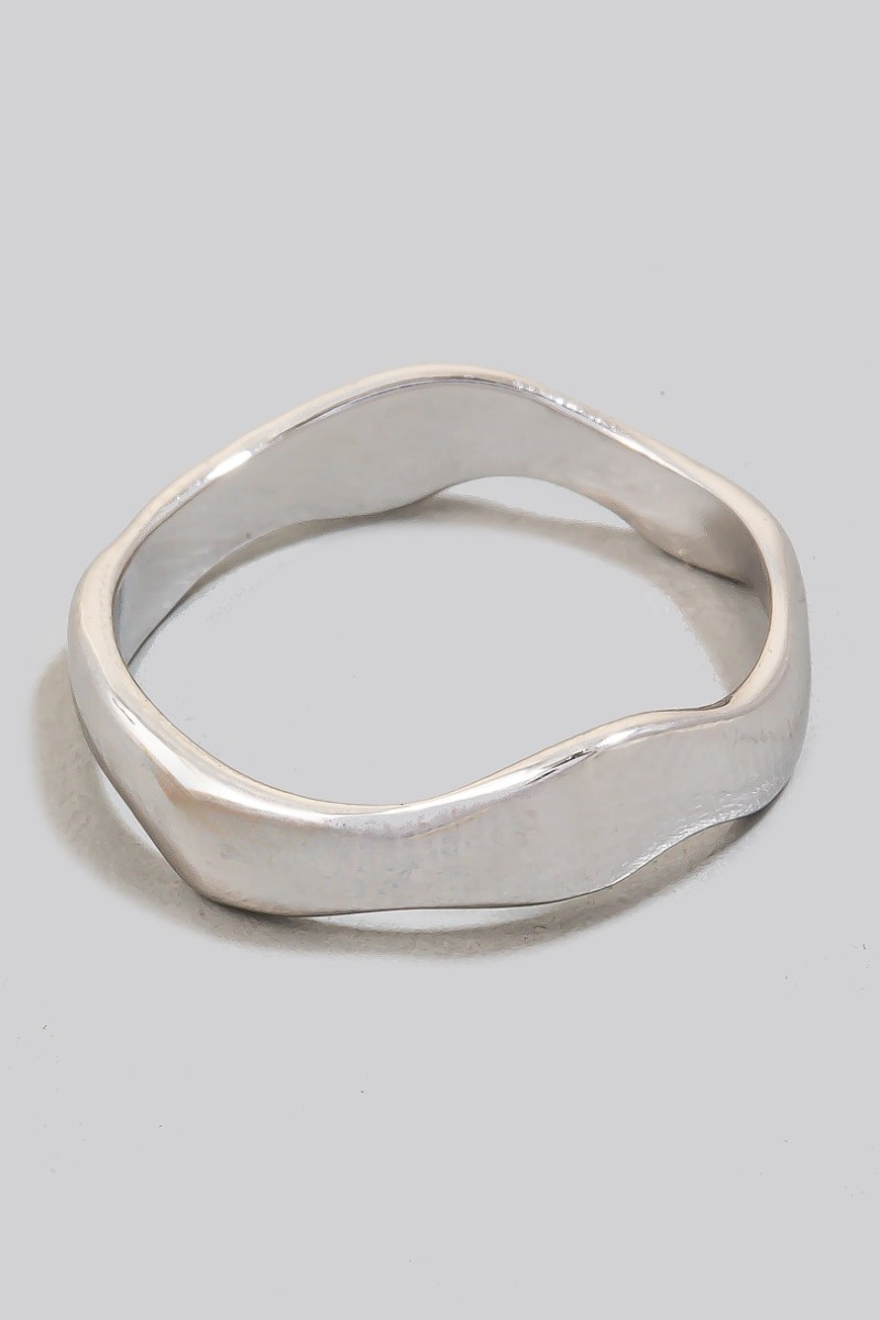 • This ring showcases a unique wavy warped metallic style. Discover the perfect balance of subtlety and flair as this ring effortlessly completes your look.