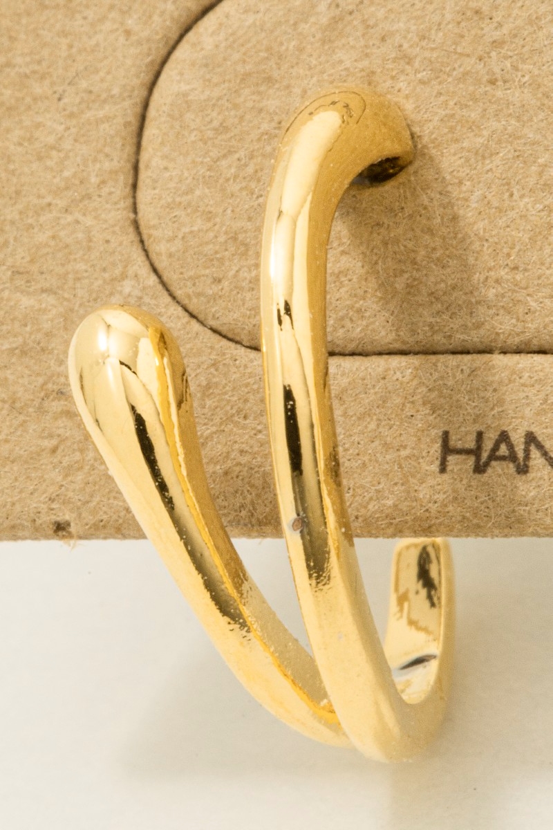 • This pair of hoop earrings showcases a unique thin line twist style. Redefine your look effortlessly with this standout, on-trend piece.