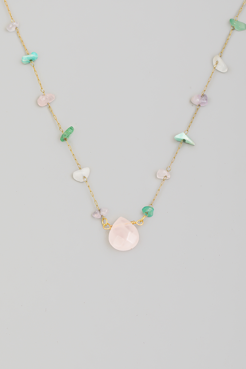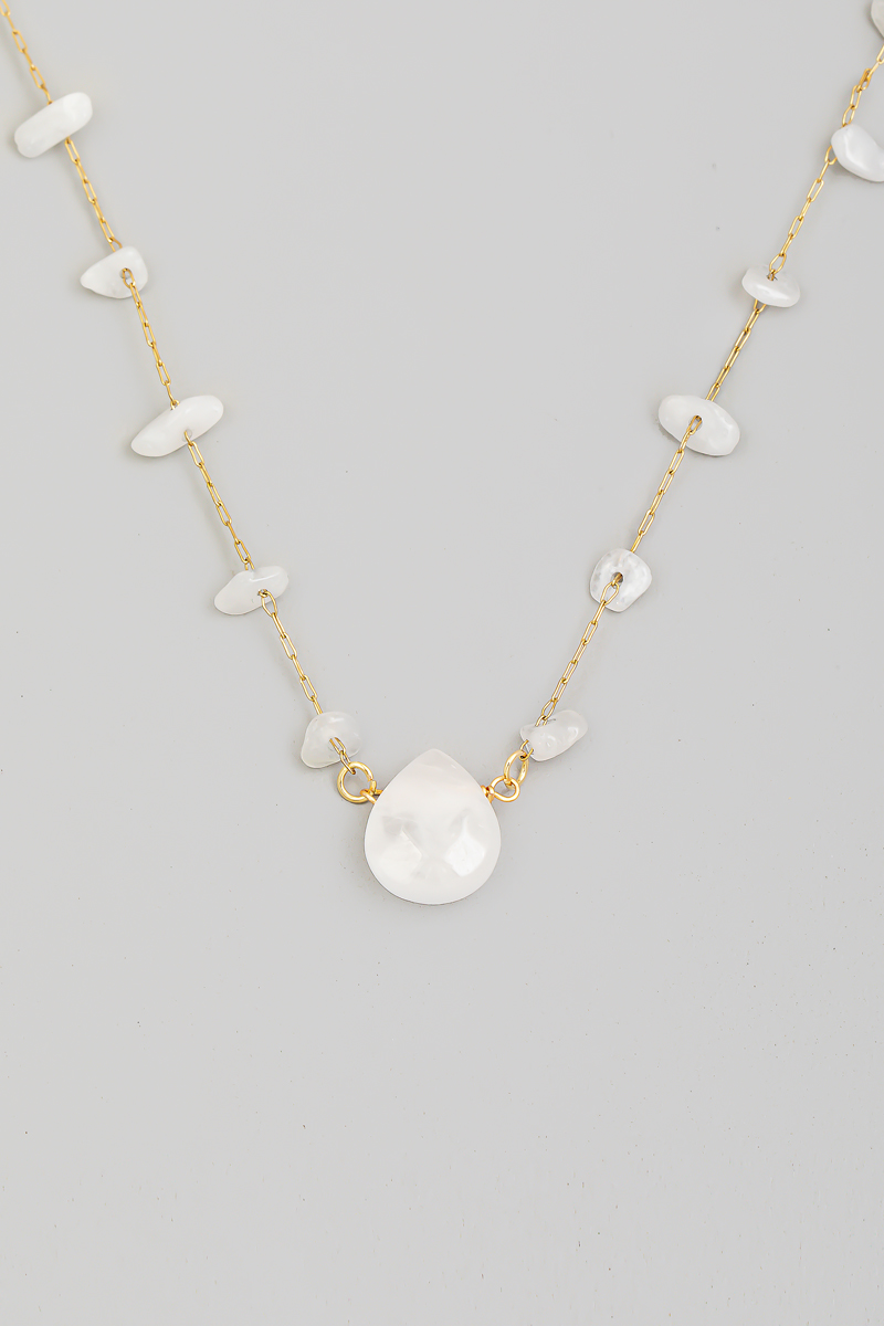 - This necklace brings a luxurious pebble stone beads pendant station style. Savor the allure of detailed craftsmanship in this exquisite accessory.
