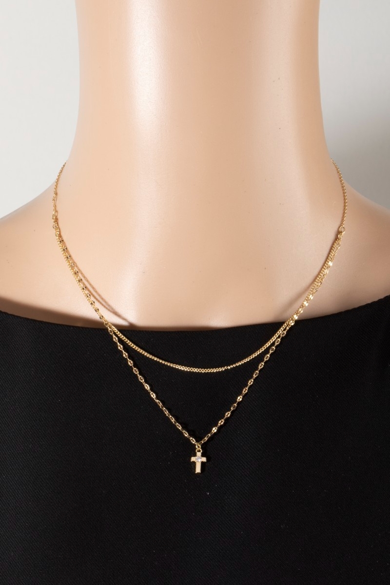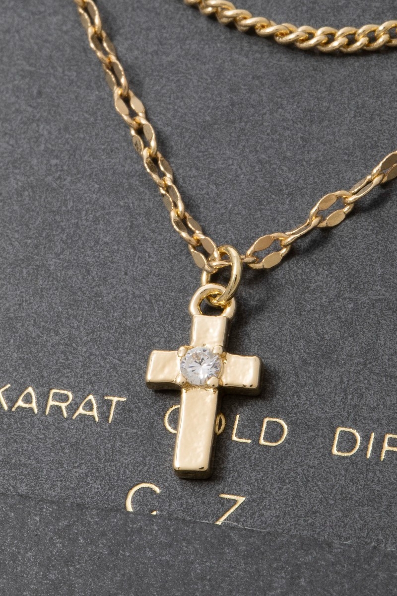 - This layered necklace displays a fashionable 14k gold dipped cubic zirconia cross style. Celebrate individual style with this versatile, eye-catching addition.