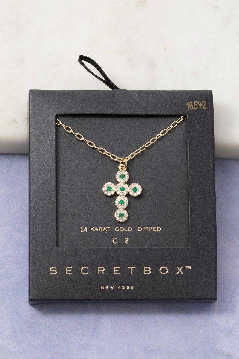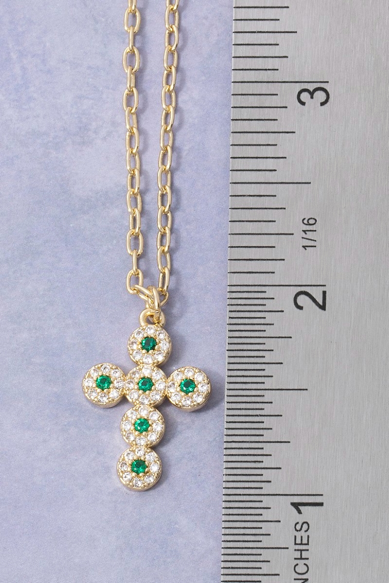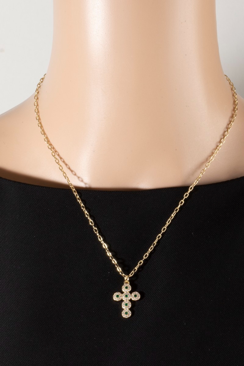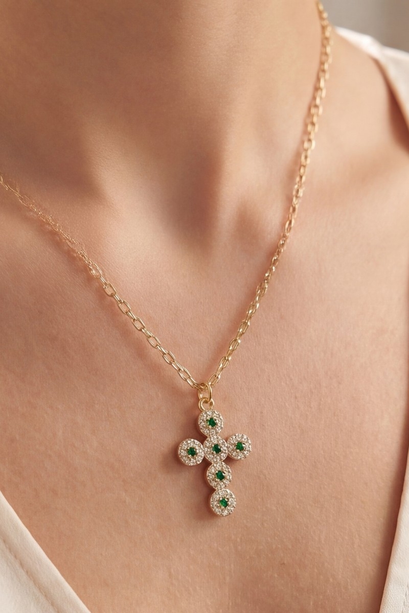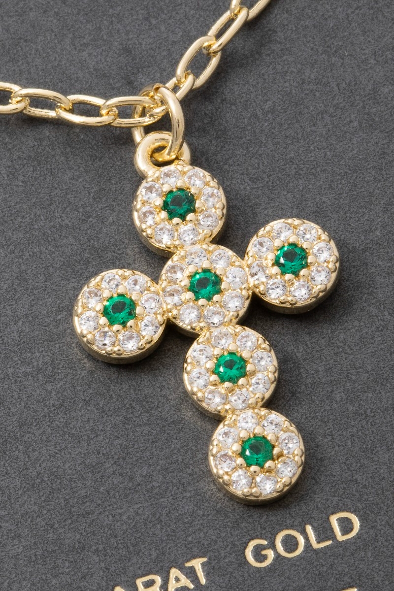 - This necklace showcases a unique 14k gold dipped cubic zirconia emerald cross style. Celebrate individual style with this versatile, eye-catching addition.