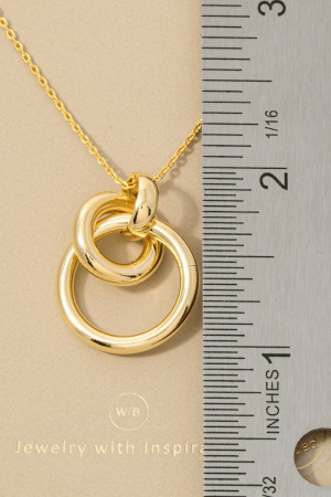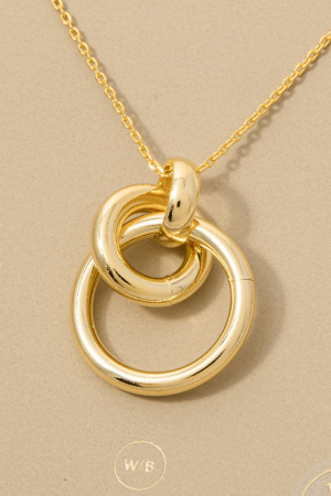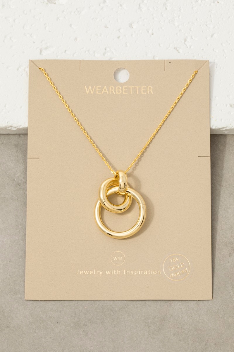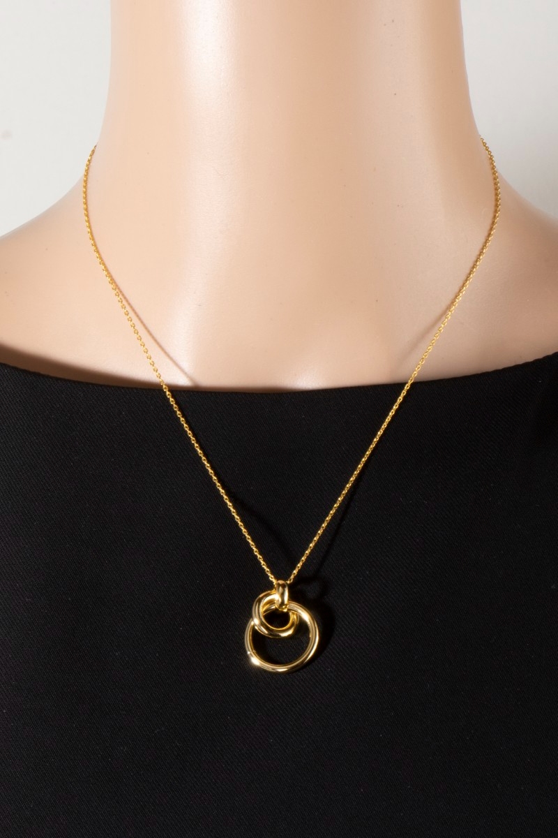 - This pendant necklace adds a modern 18k gold interlocking circle style. Celebrate individual style with this versatile, eye-catching addition.