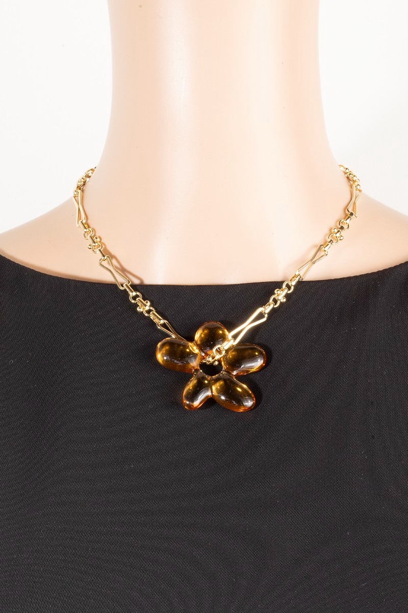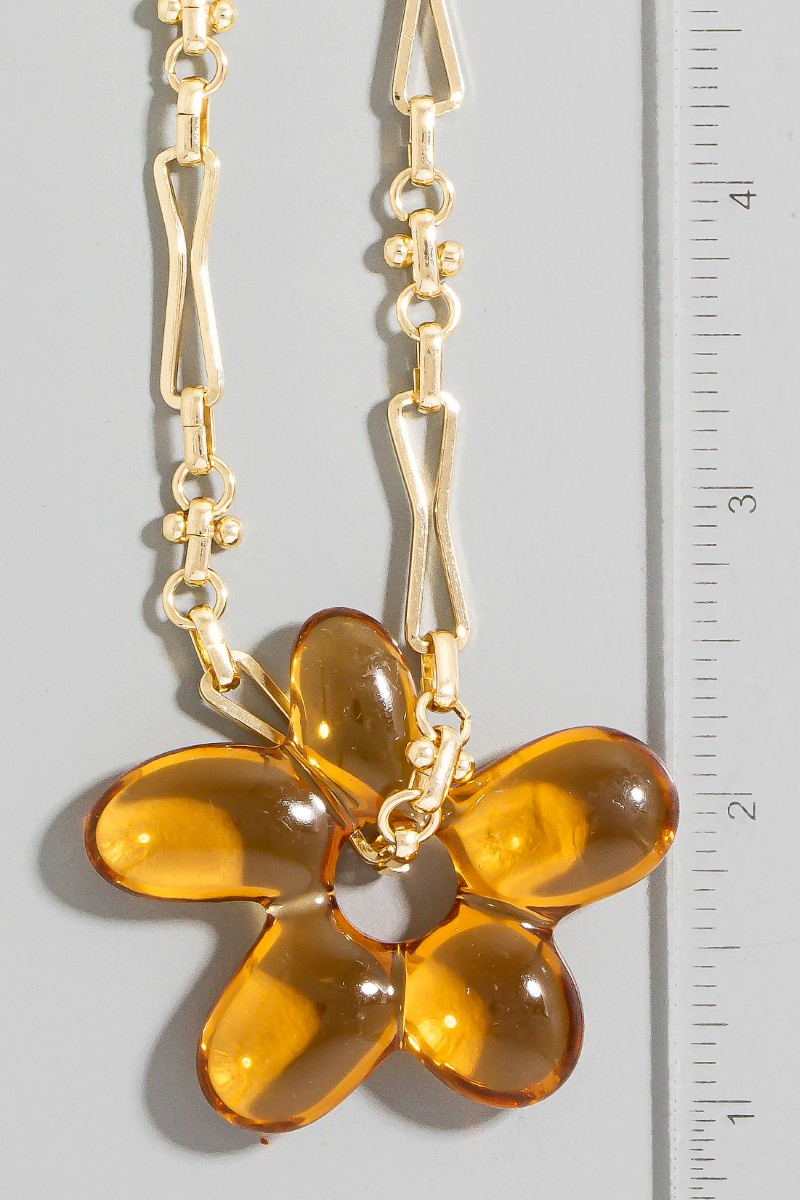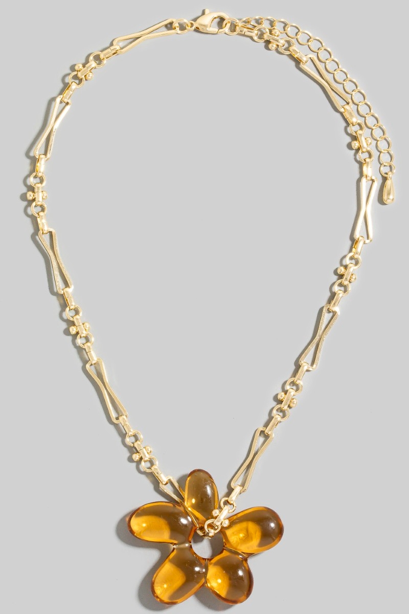 - This pendant necklace displays a vibrant abstract resin flower style. Celebrate the art of accessorizing with this piece that effortlessly encapsulates modern trends.