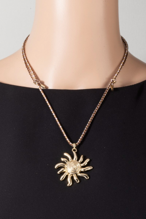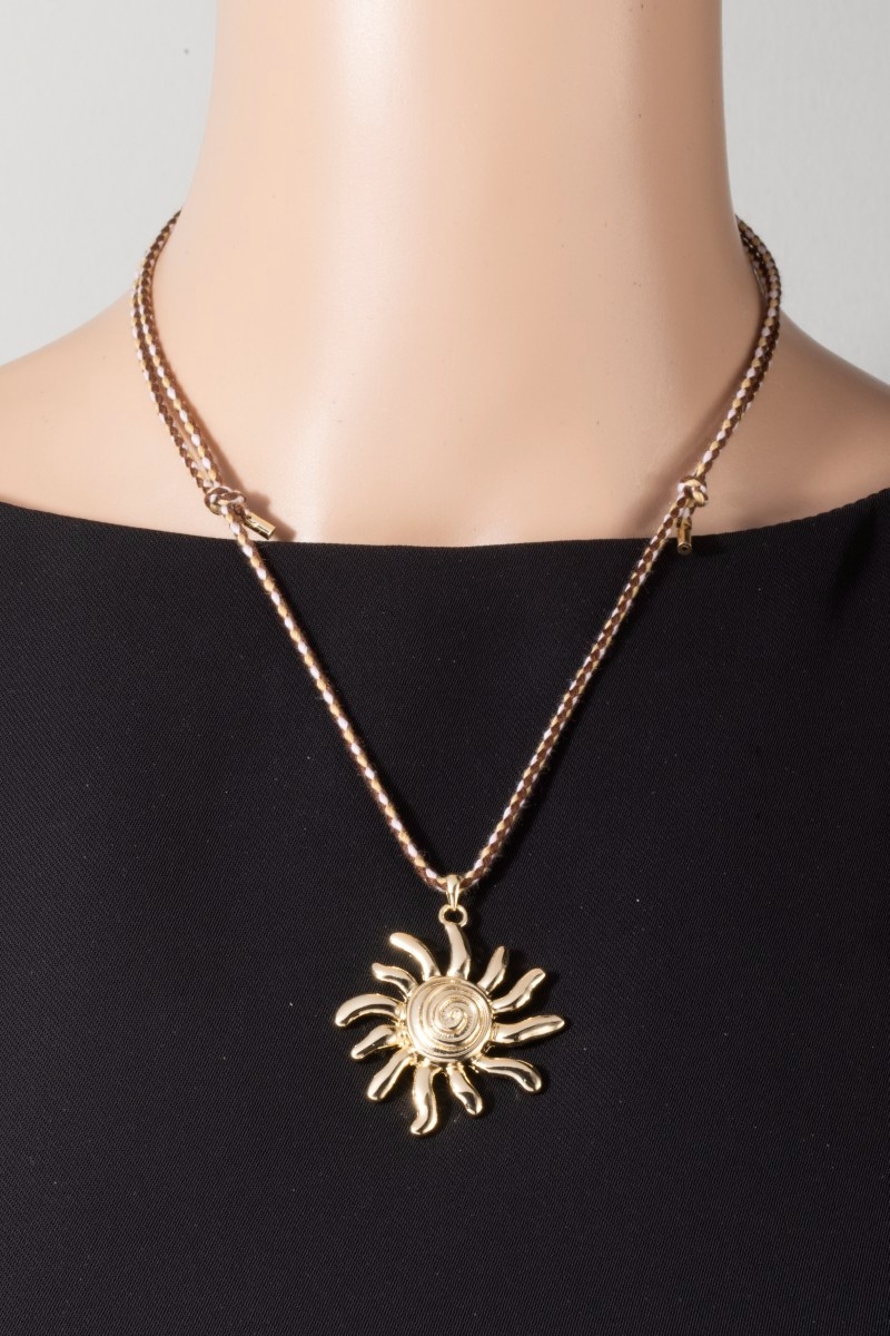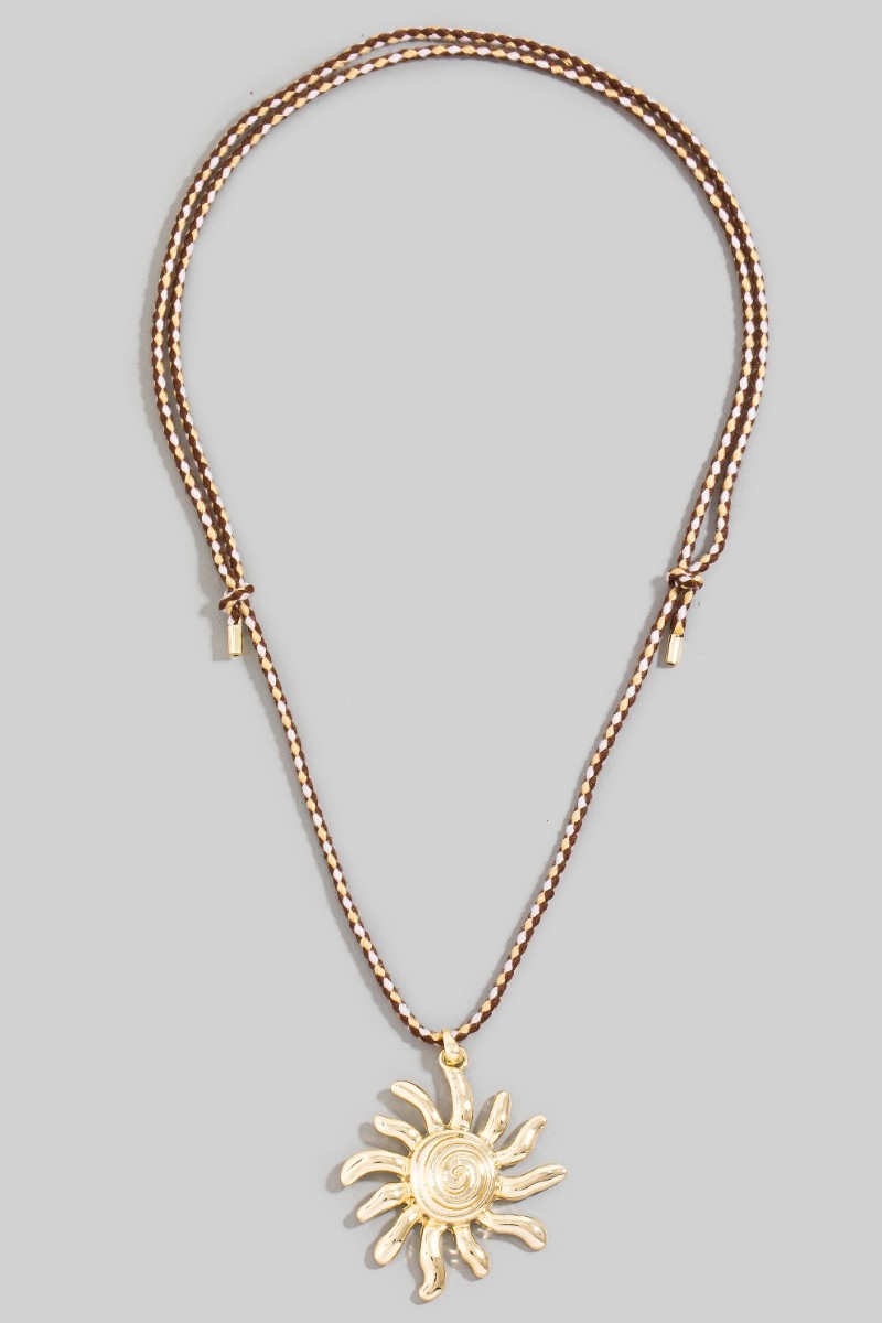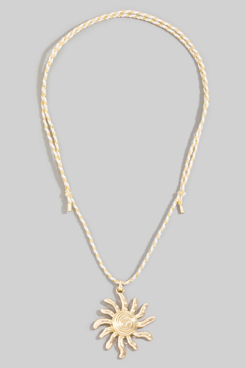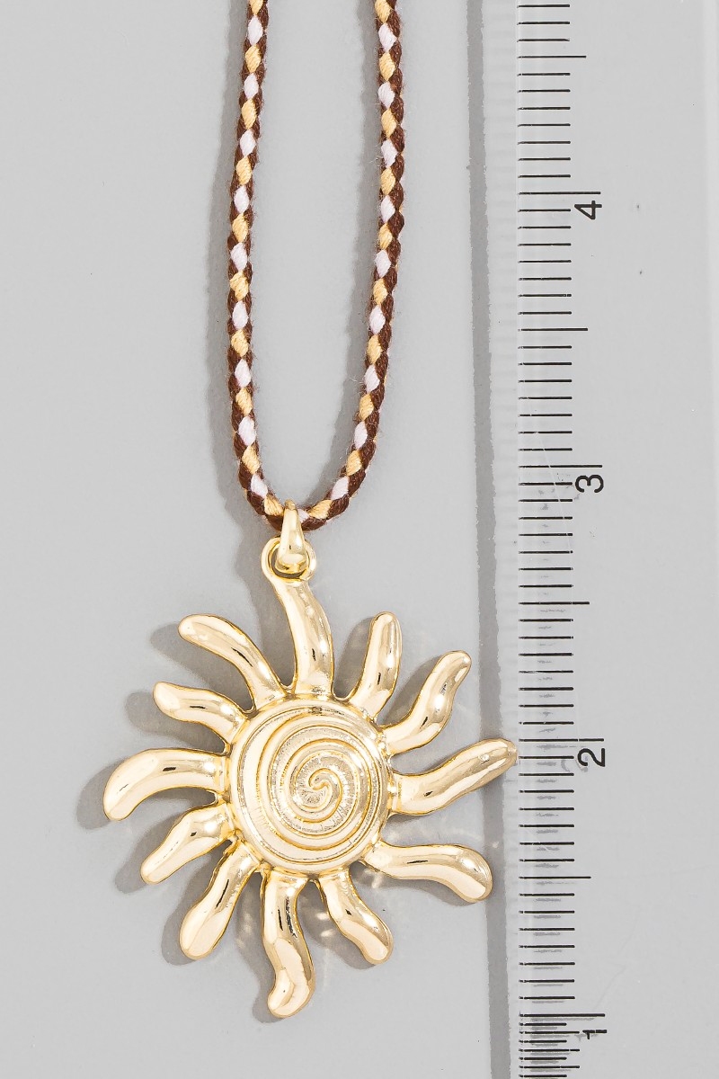 - This pendant necklace showcases a unique adjustable cotton cord sun style. Redefine your look effortlessly with this standout, on-trend piece.