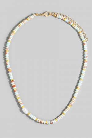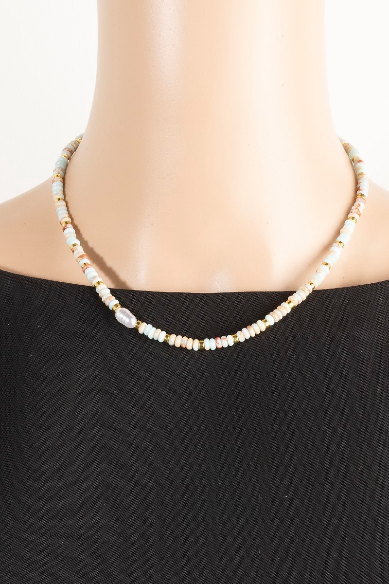 • This necklace displays a fashionable assorted earth tones and metallic beaded style. Explore a blend of classic charm and contemporary flair.