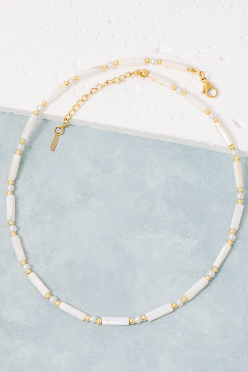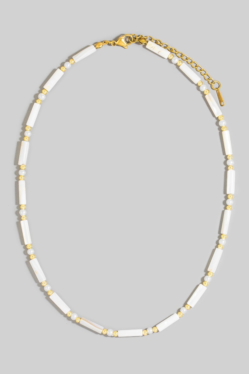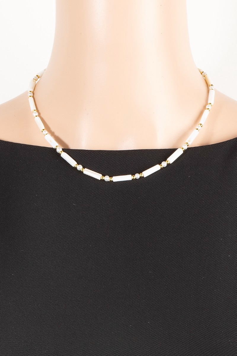 - This necklace showcases a unique assorted tube beaded style. Explore a refined sense of style with this necklace, seamlessly elevating the chic factor of your look.