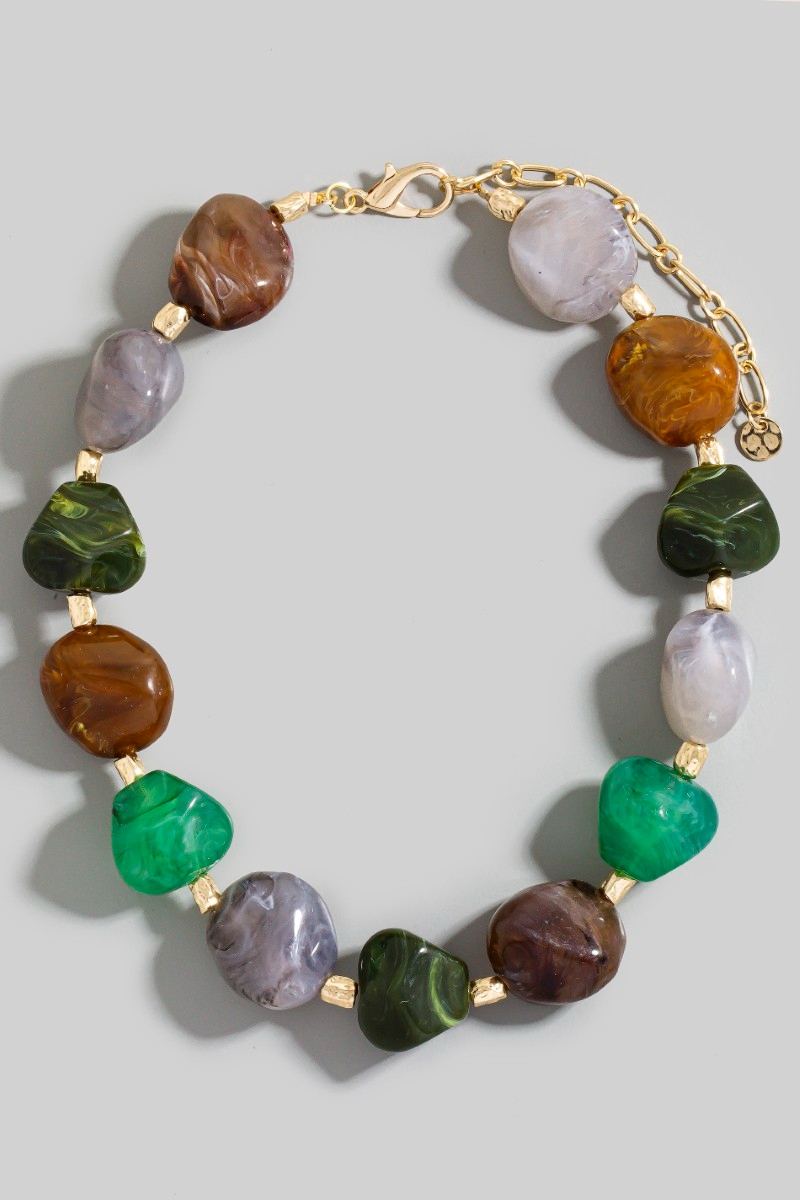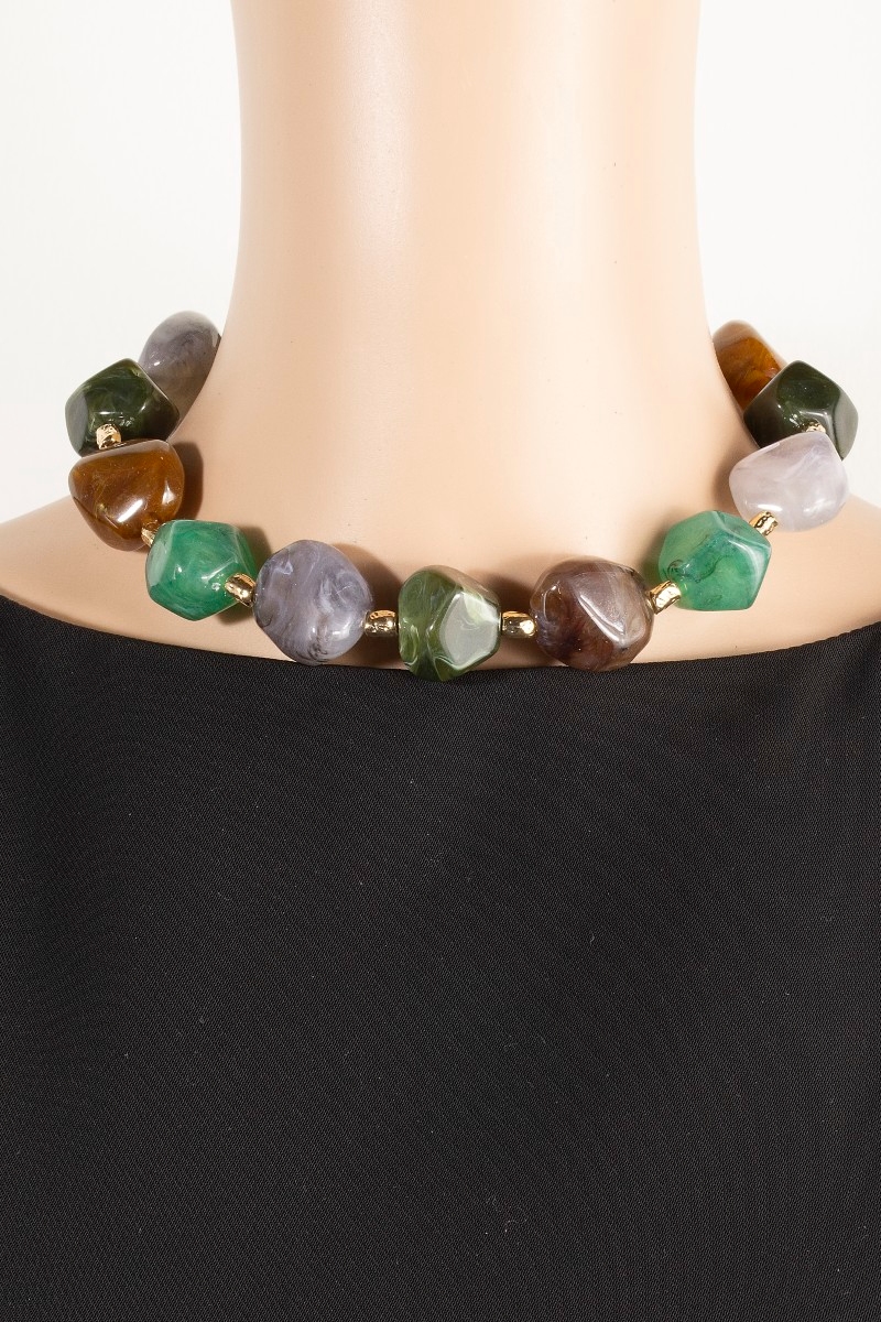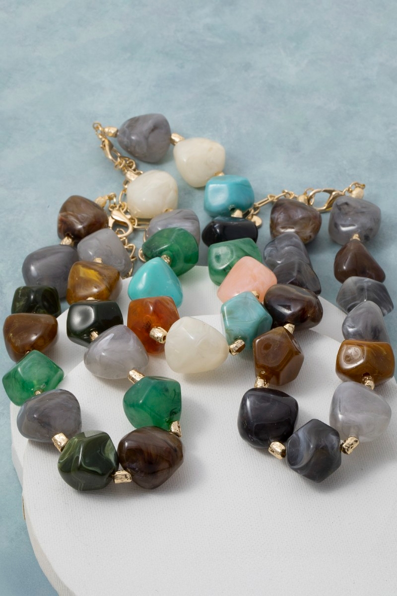 - This necklace brings a stunning bulky resin stone style. Discover the perfect balance of subtlety and flair as this necklace effortlessly completes your look.