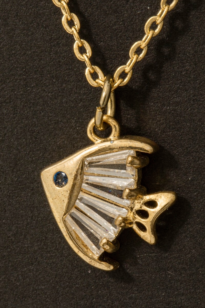 - This necklace brings a luxurious cz fish pendant style. Embark on a journey of sartorial refinement as this necklace effortlessly complements your fashion sense.
