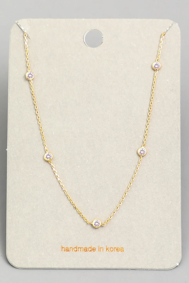 Gold Dipped Cross Pendant Chip Stone Beaded Necklace
