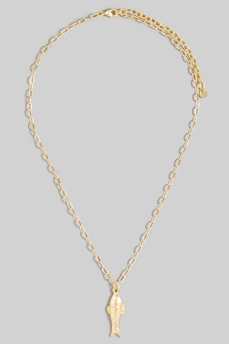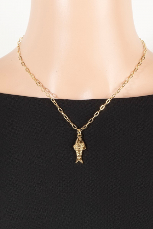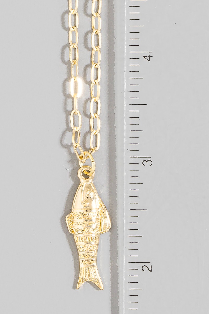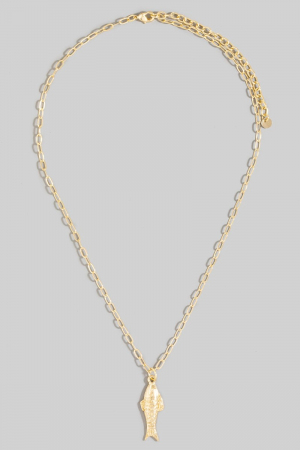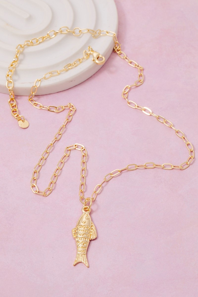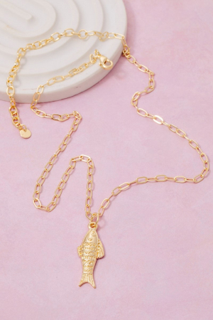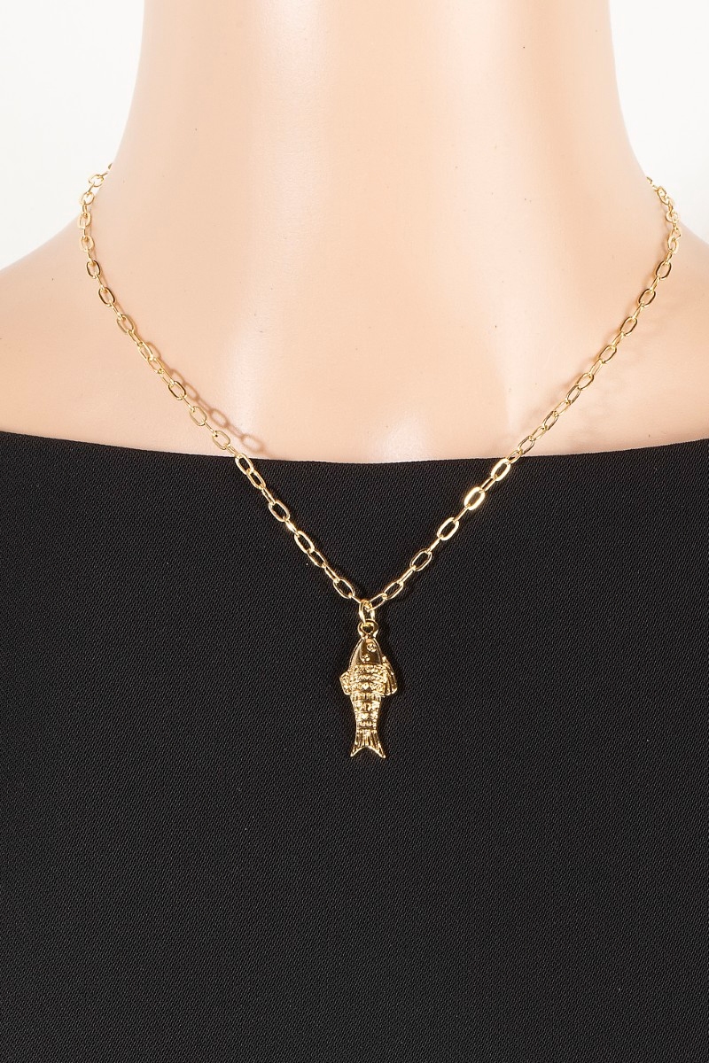 • This chain necklace showcases a unique detailed fish pendant dainty style. Embark on a journey of sartorial refinement as this chain necklace effortlessly complements your fashion sense.