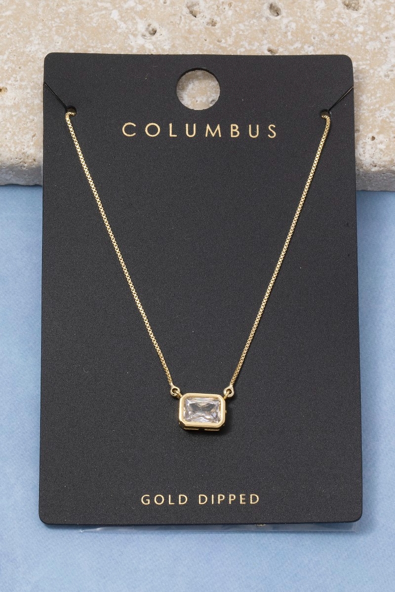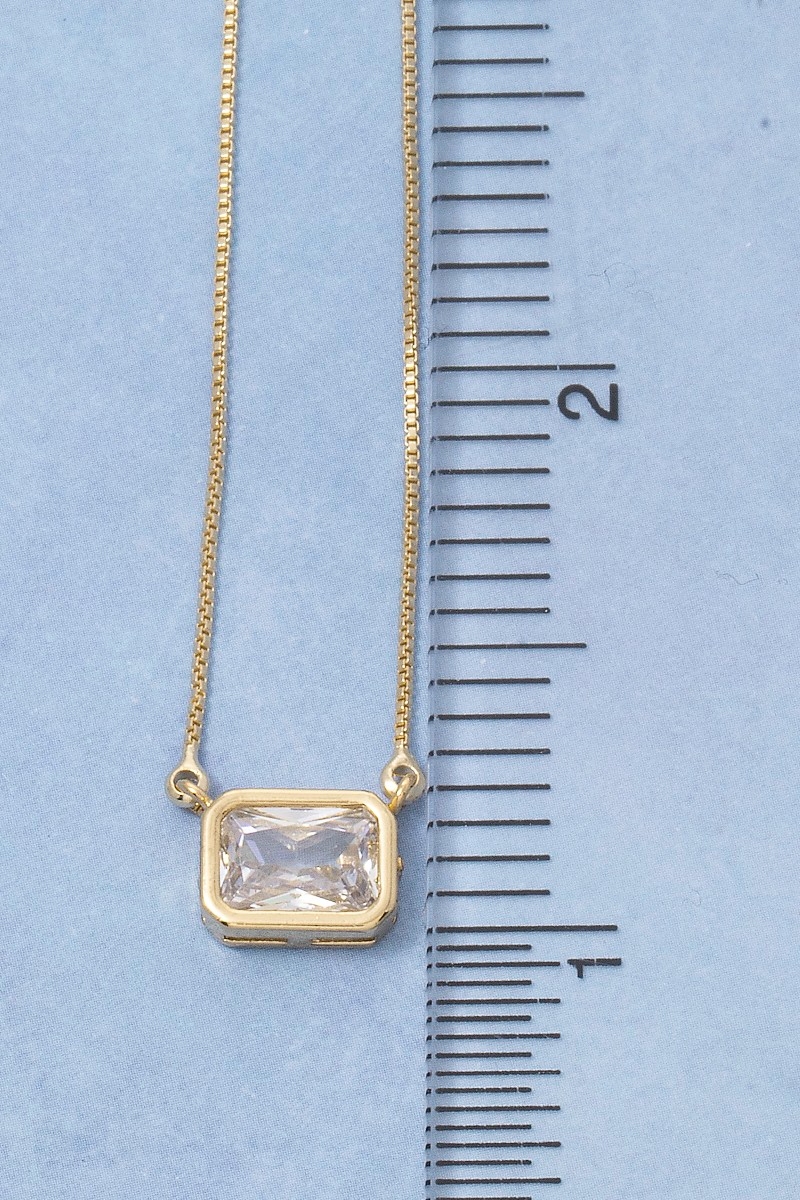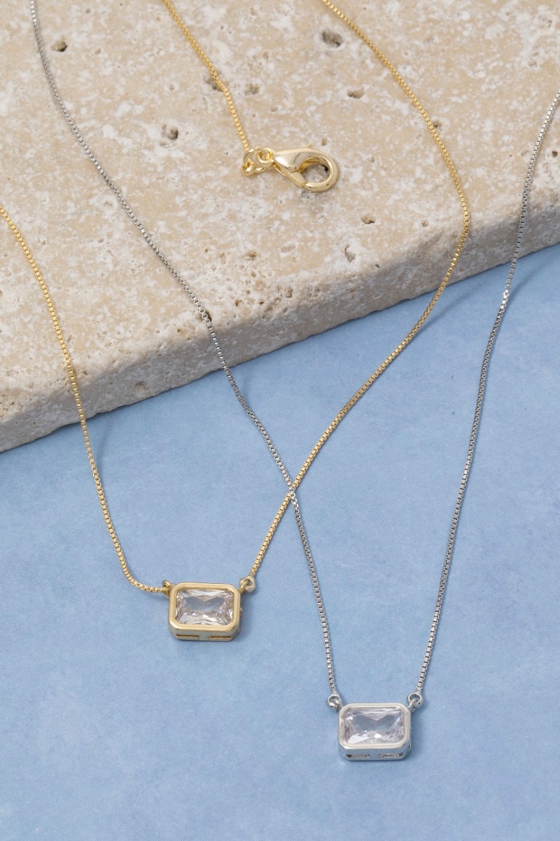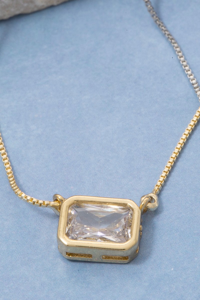 • This pendant necklace features a fashionable gold dipped cubic zirconia baguette style. Celebrate individuality with this pendant necklace that effortlessly expresses your unique sense of style.