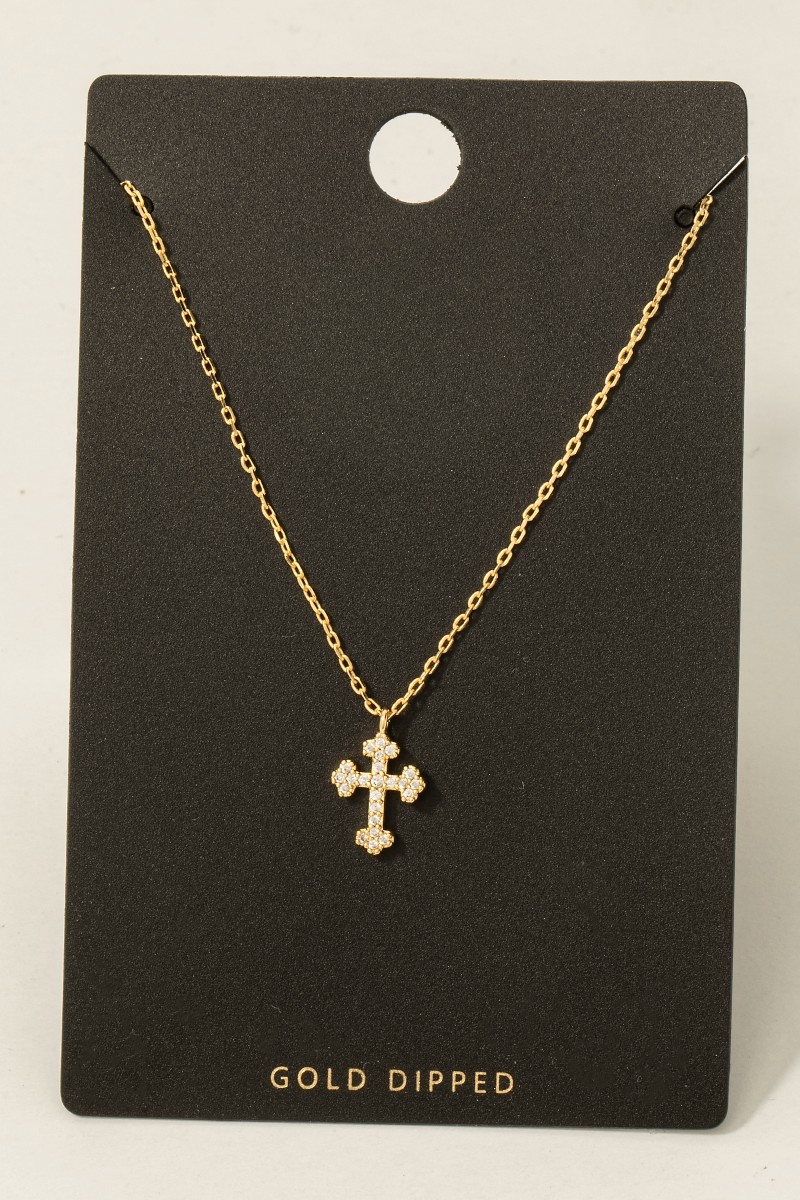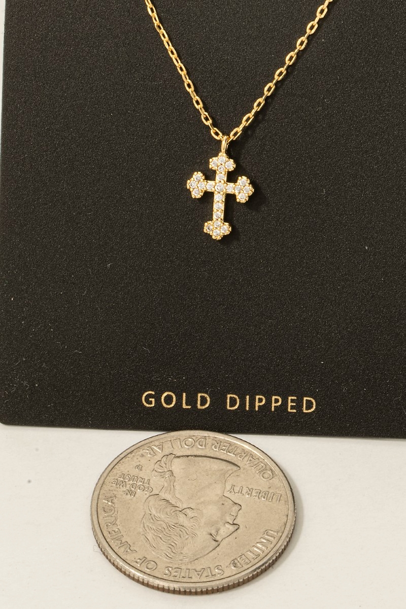• this columbus jewelry necklace brings a unique gold dipped cubic zirconia pave gothic cross gem pendant style. Explore a refined sense of style with this columbus jewelry necklace, seamlessly elevating the chic factor of your look.