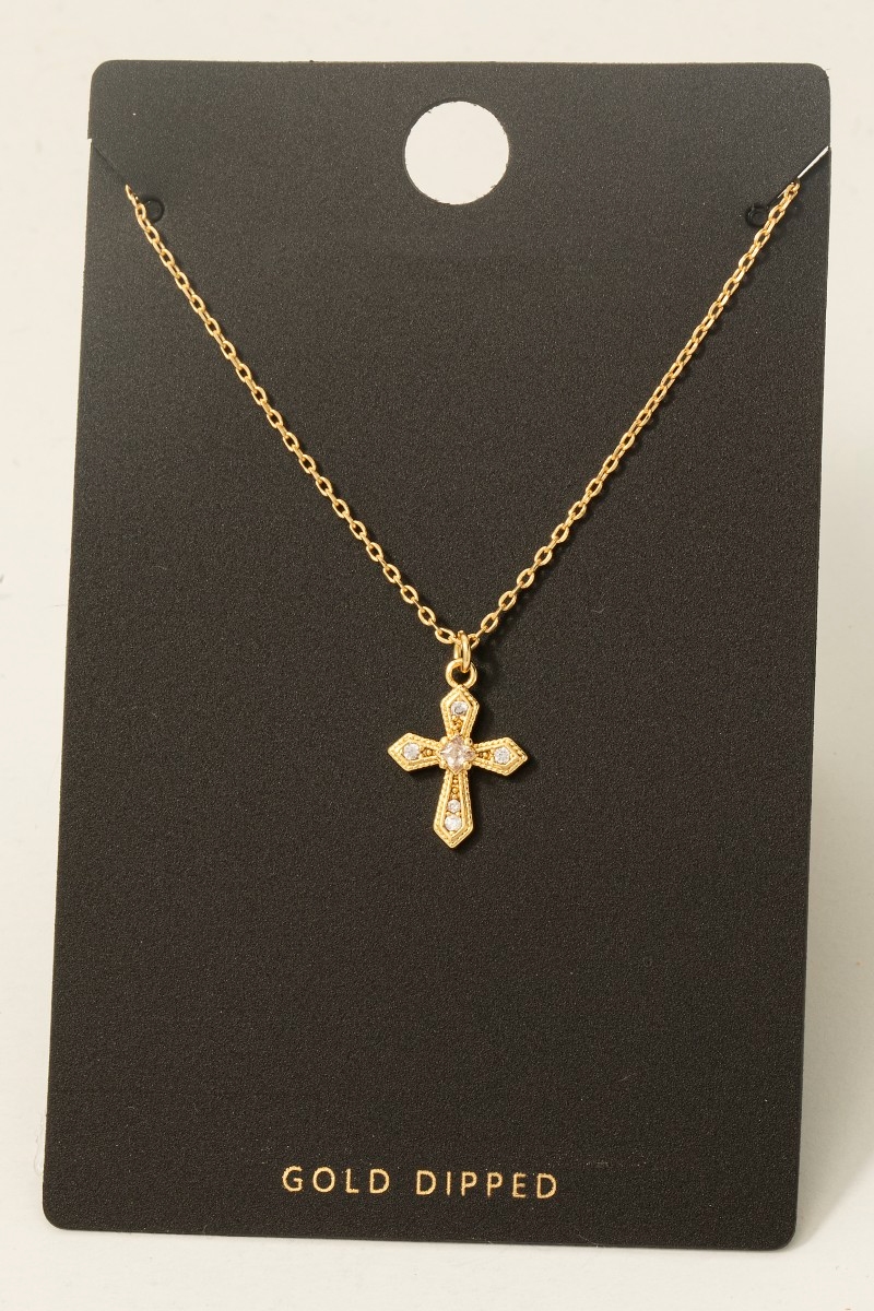 - This necklace introduces a stunning gold dipped cubic zirconia pave gothic cross pendant style. Witness the transformative power of accessories as this piece effortlessly redefines your fashion narrative.