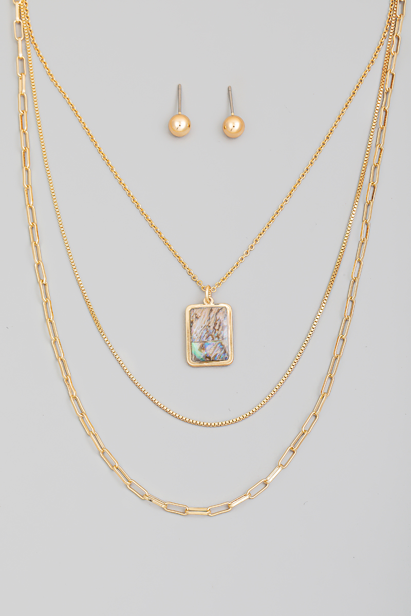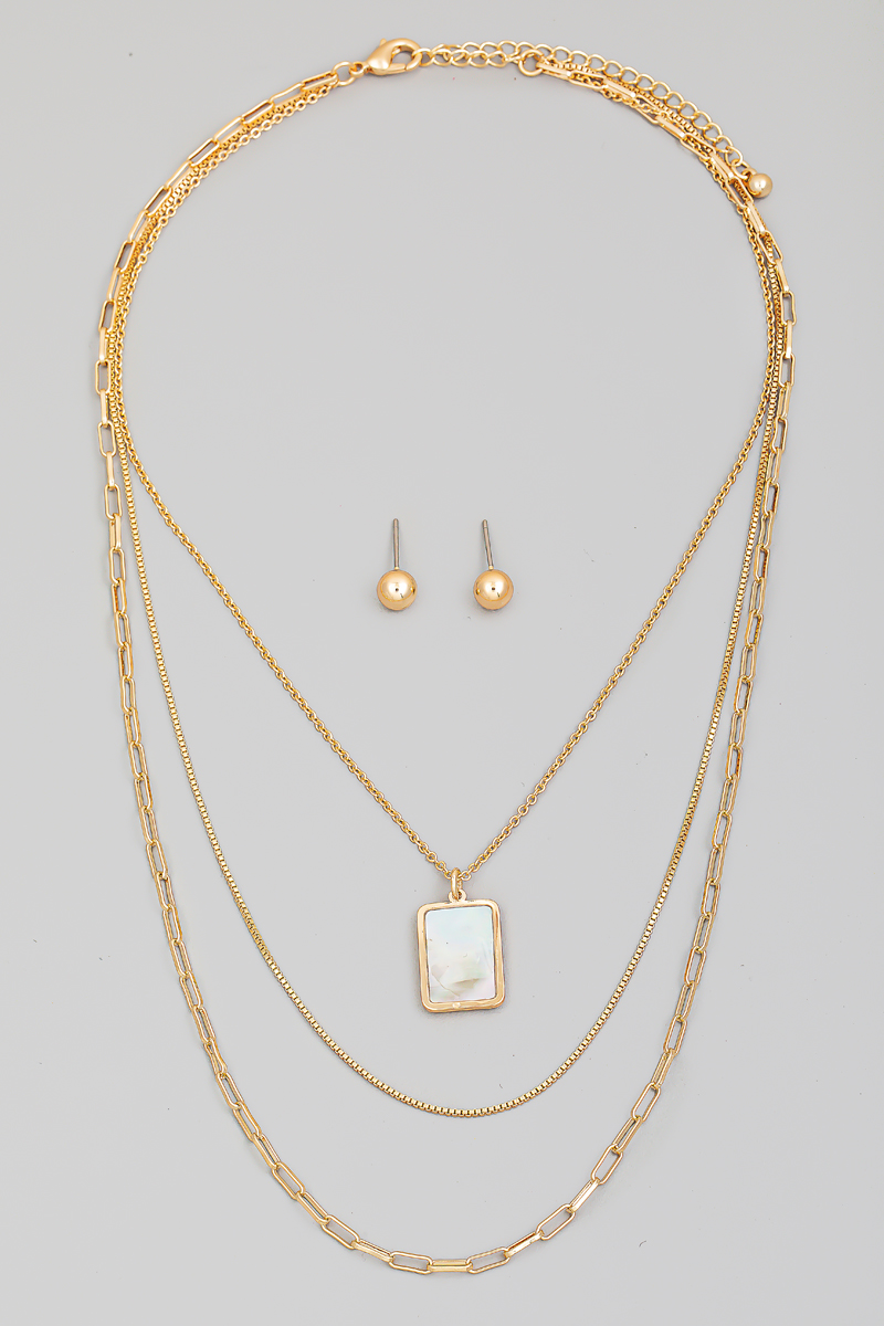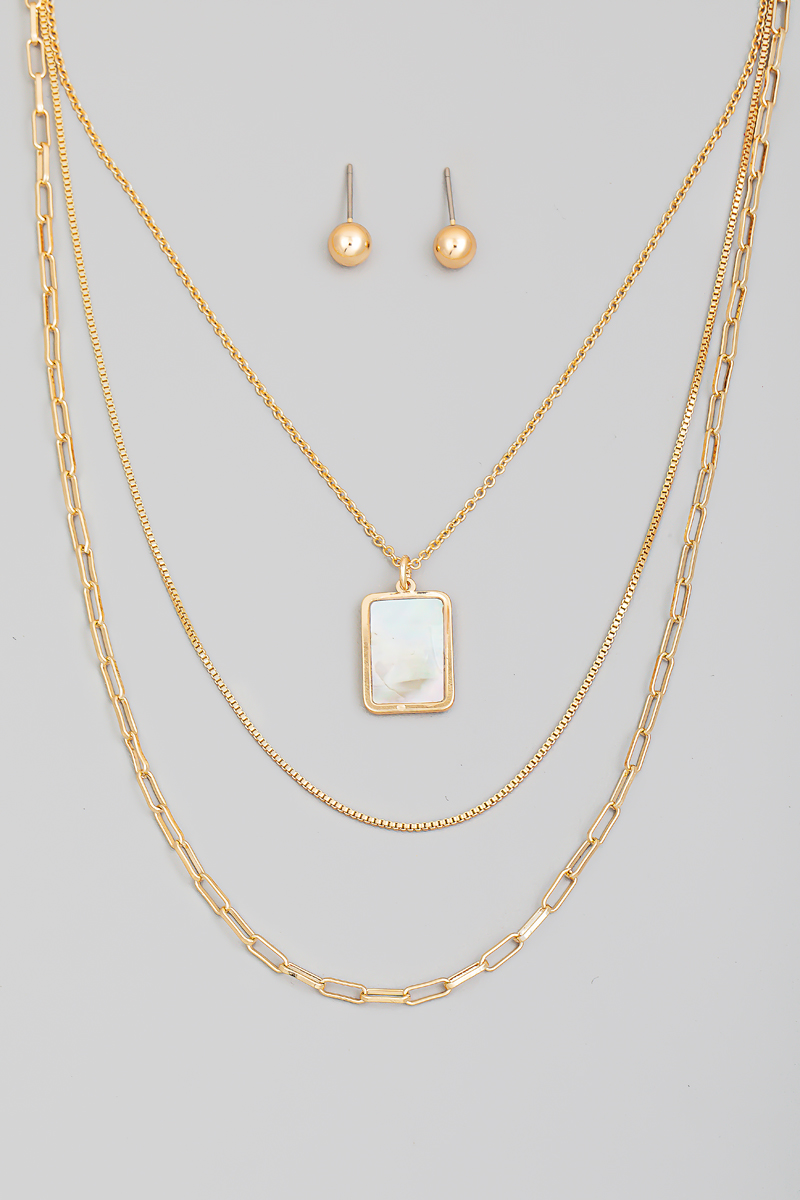 Rectangle Mother Of Pearl Pendant Necklace