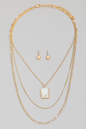 Pearl Beaded Square Pearl Pendant Necklace Set