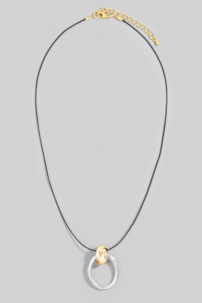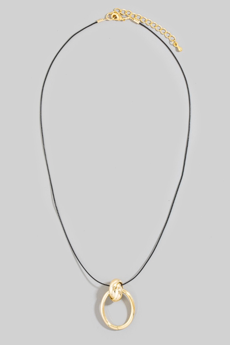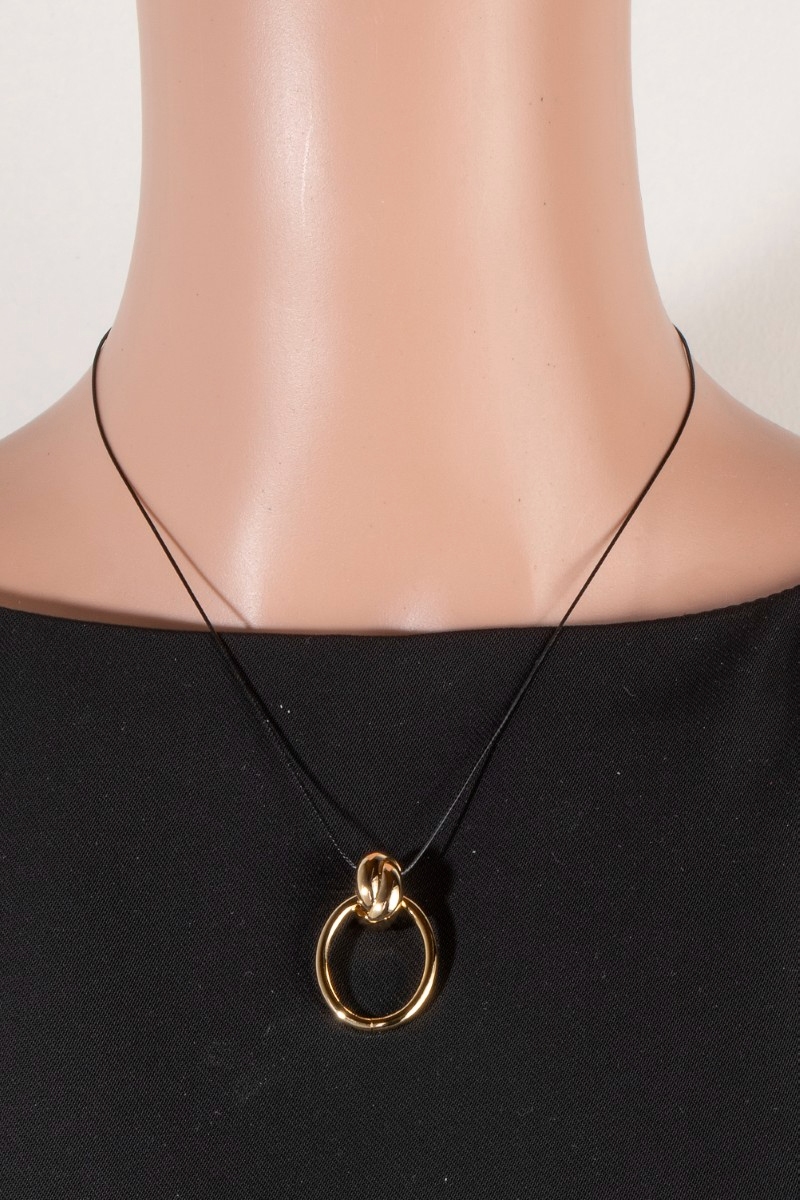 - This necklace displays a fashionable metallic oval hoop pendant dainty cord style. Immerse yourself in fashion finesse with this statement necklace.