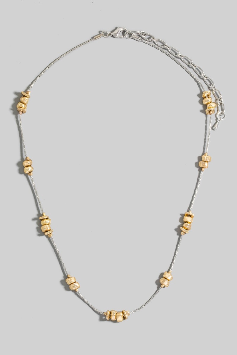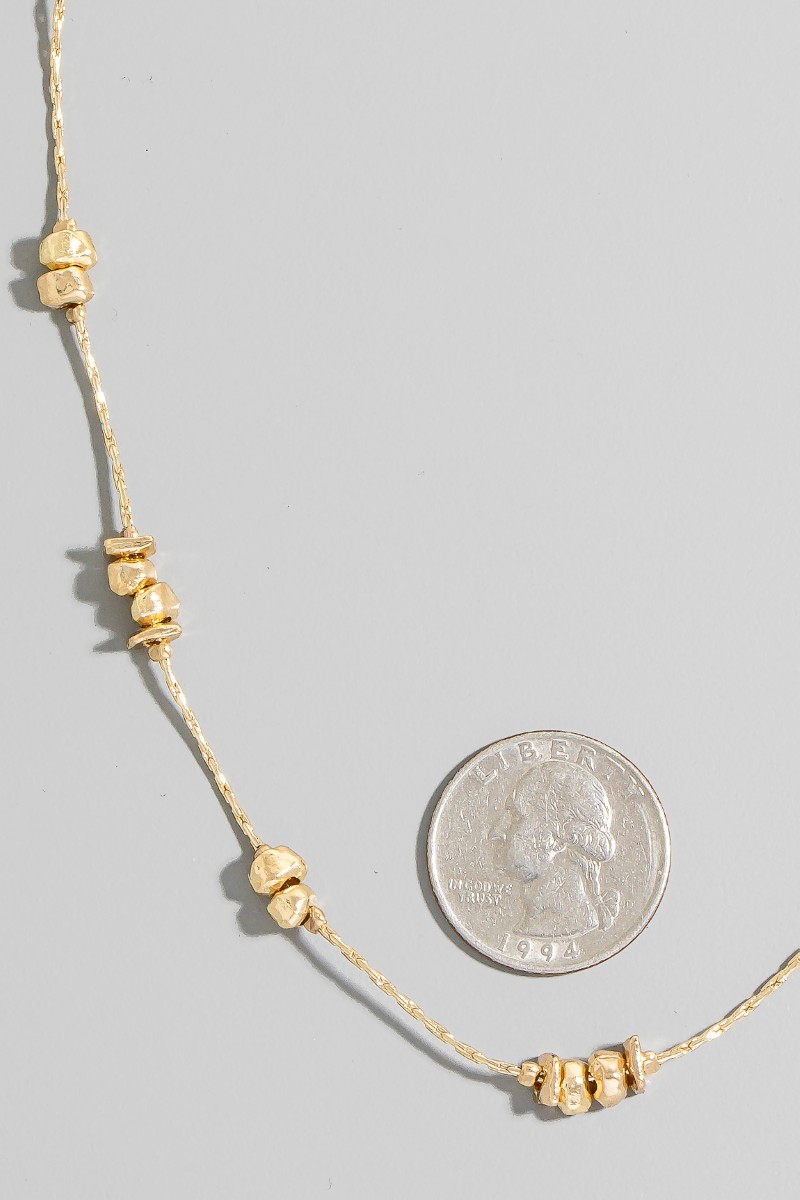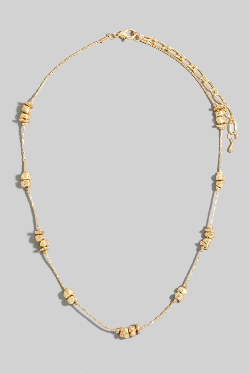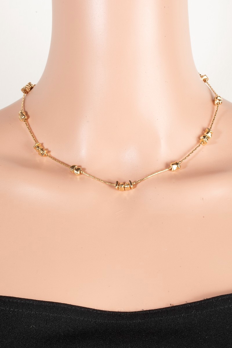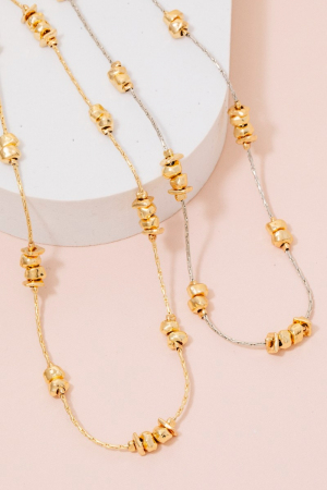 - This chain necklace displays a vibrant metallic station beads style. Indulge in the artistry of accessorizing with this unique piece.