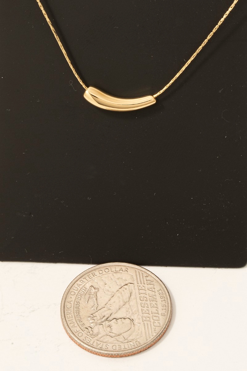 • This necklace displays a fashionable metallic tube pendant style. Immerse yourself in the world of understated glamour as this necklace effortlessly exudes timeless appeal.